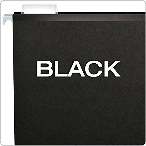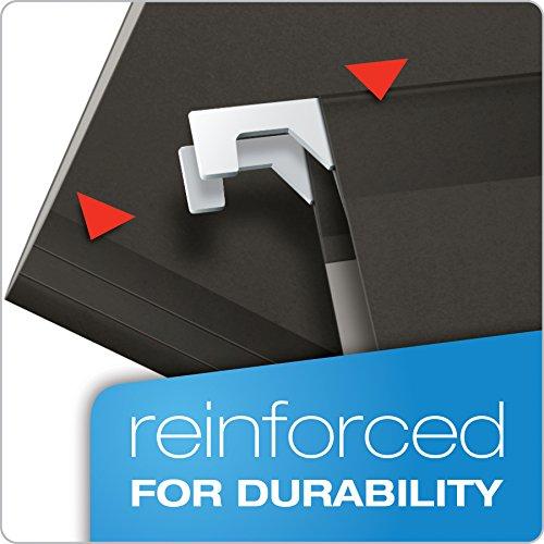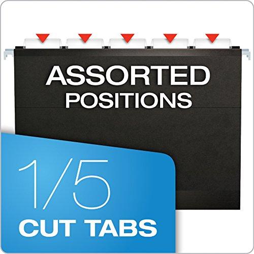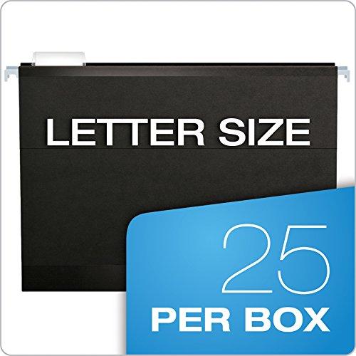 Product Description Pendaflex Reinforced Hanging Folders have laminate strips on the top edge and bottom fold to resist rips and tears. A lighter interior helps prevent misfiling. Each box includes a letter-sized, printer-ready label sheet and 25 clear 1/5-cut tabs. Letter size, black. 25 Per box. From the Manufacturer Filing efficiently means using the correct tools and Pendaflex has the right hanging folders for your individual filing style. After all, we invented the world’s first hanging folders more than a half century ago and we haven’t stopped innovating Kind of Hanging Folder do I need?