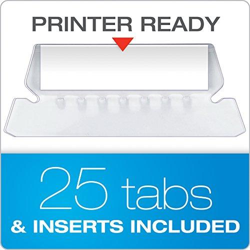 - Includes a printable label sheet and 25 clear 1/5-cut tabs