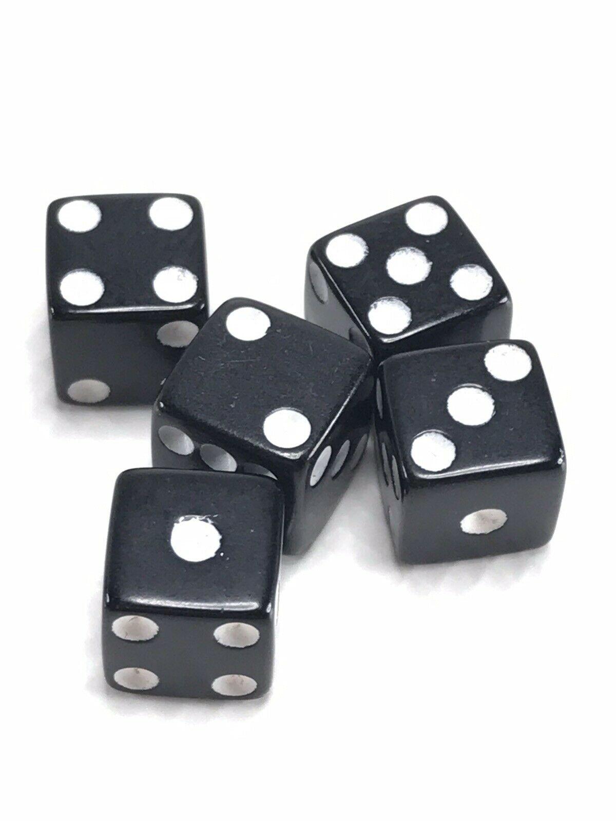 5 Count Pack Black 6-Sided Acrylic Opaque Classic Board Game Dice Standard Size