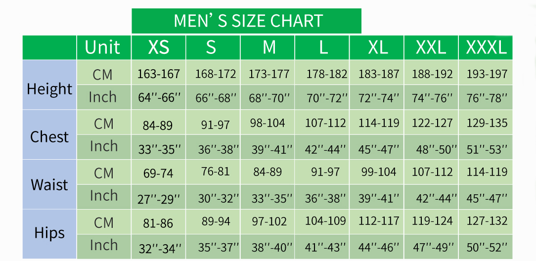 Size chart (cm): 1 inch = 2.54 cm