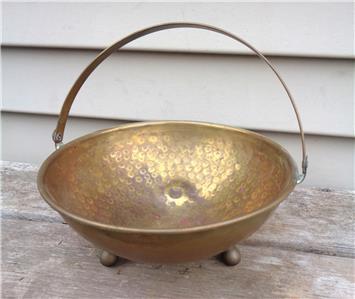 Vintage Footed 7" Diameter Brass Bowl Basket with Handle You are bidding on the item in the title.
