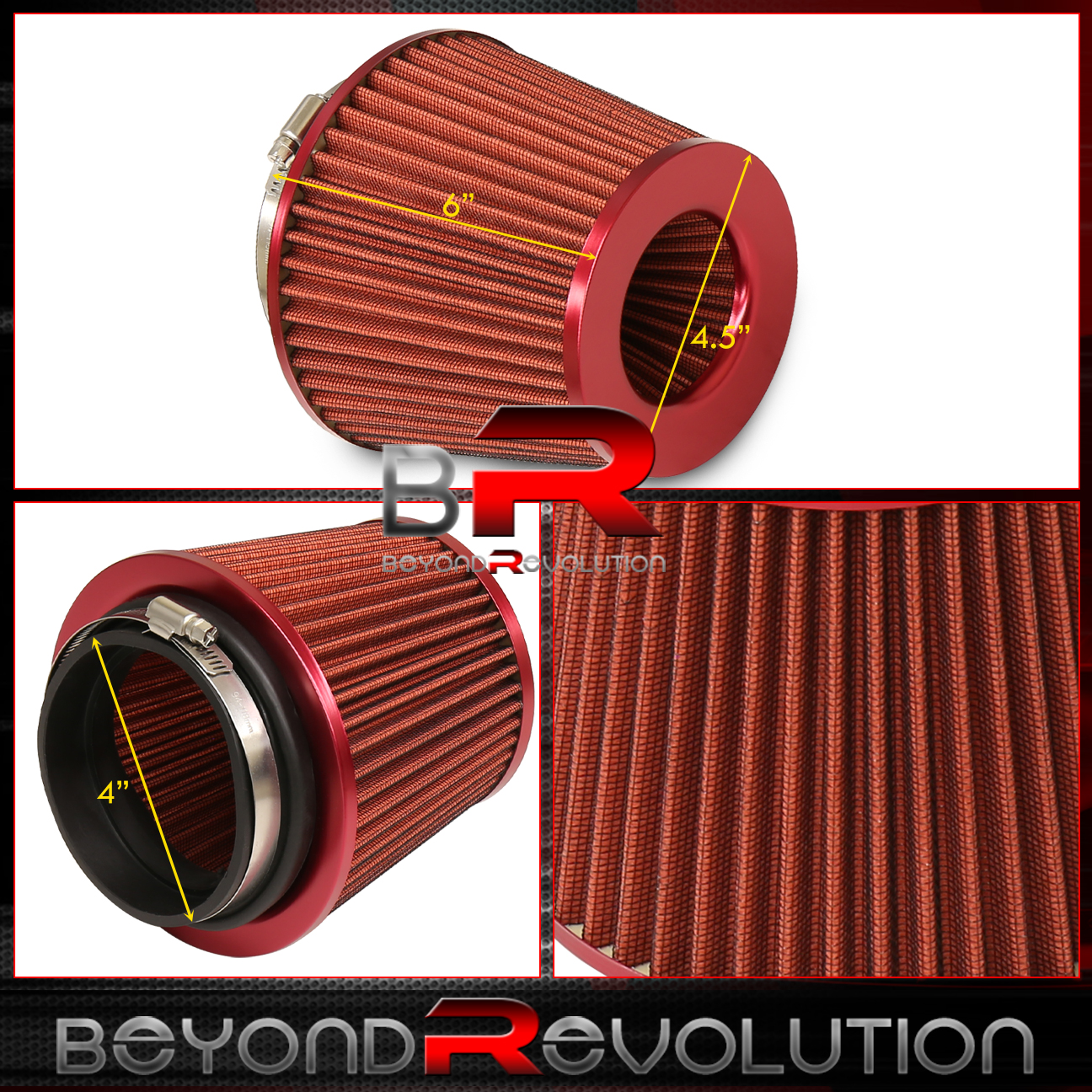 For Chevy 4" Replacement Induction Cone Air Filter Intake Cold Short Ram Dry Red