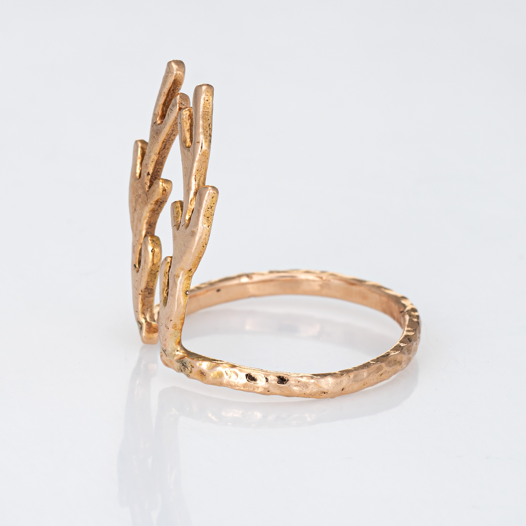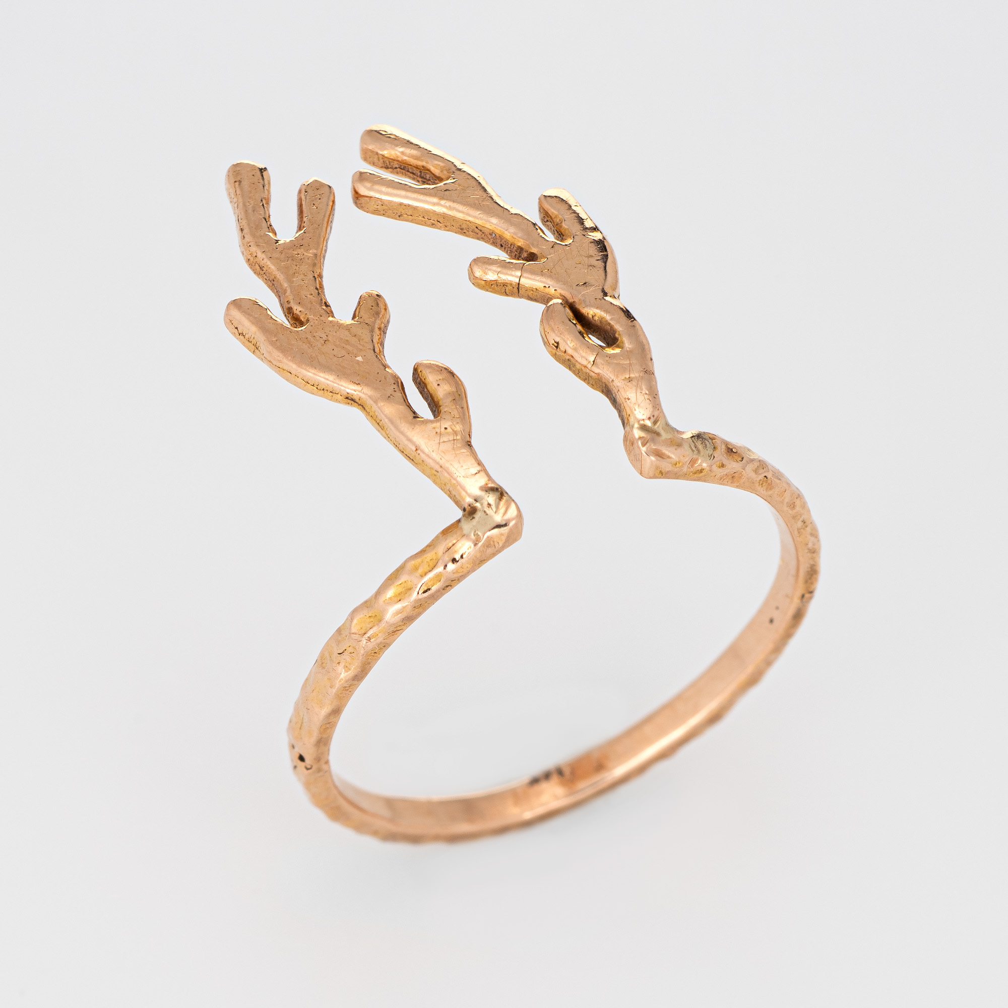 Deer Antlers Ring Estate 14k Rose Gold Vintage Fine Animal Horn Spike Jewelry