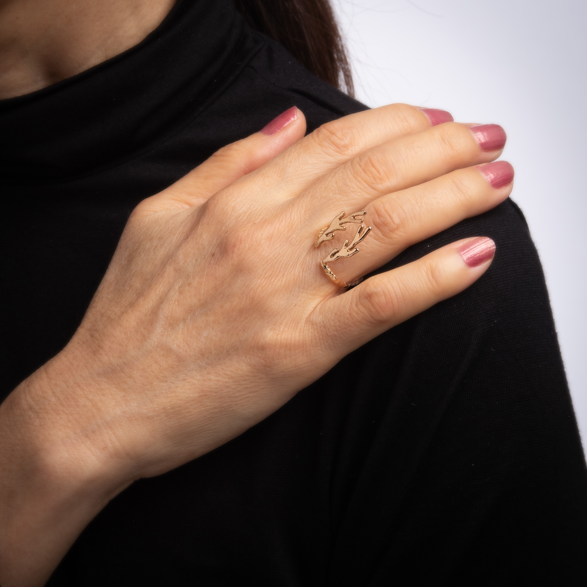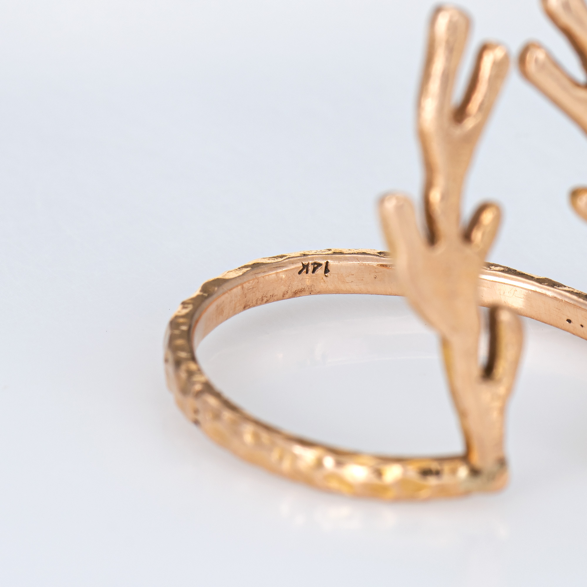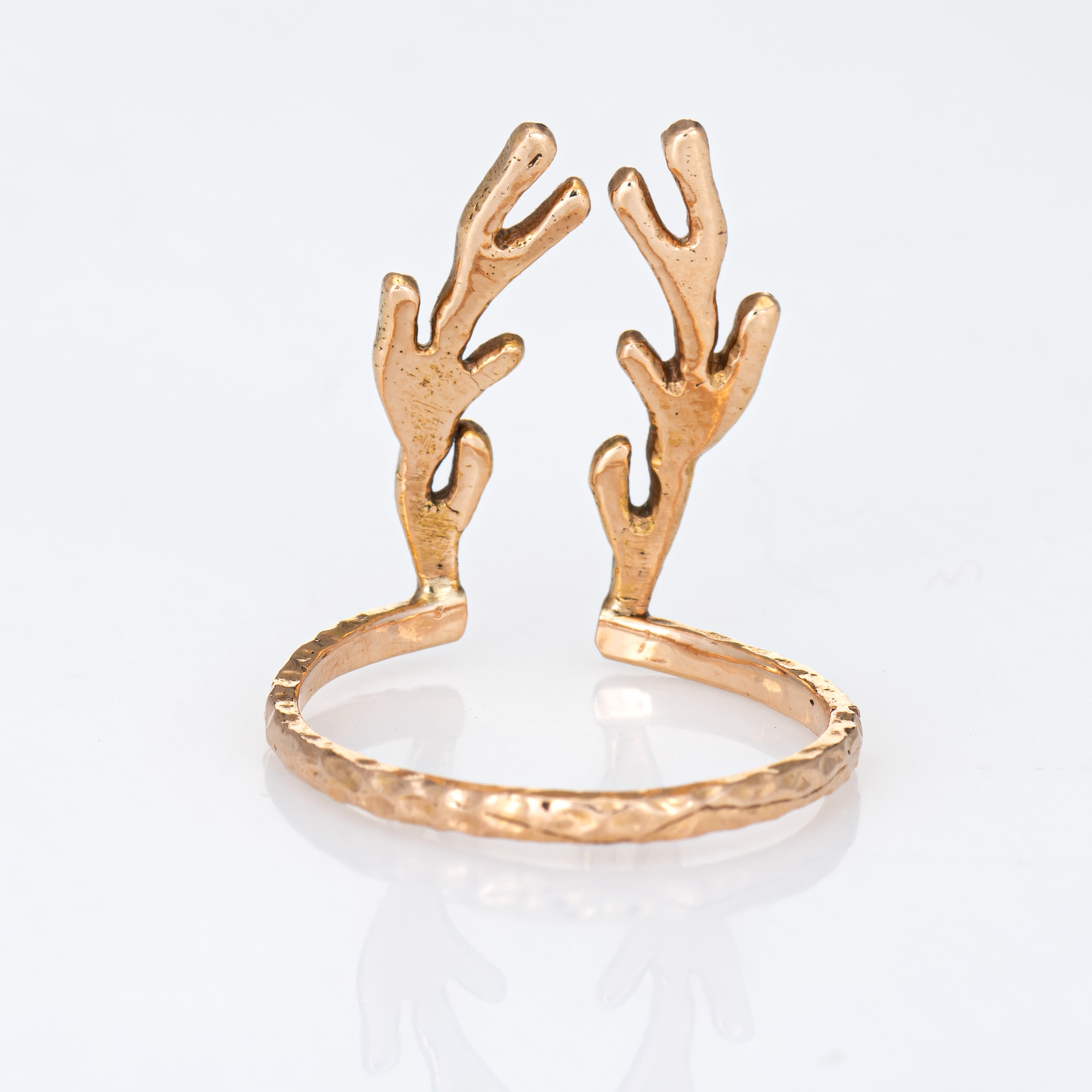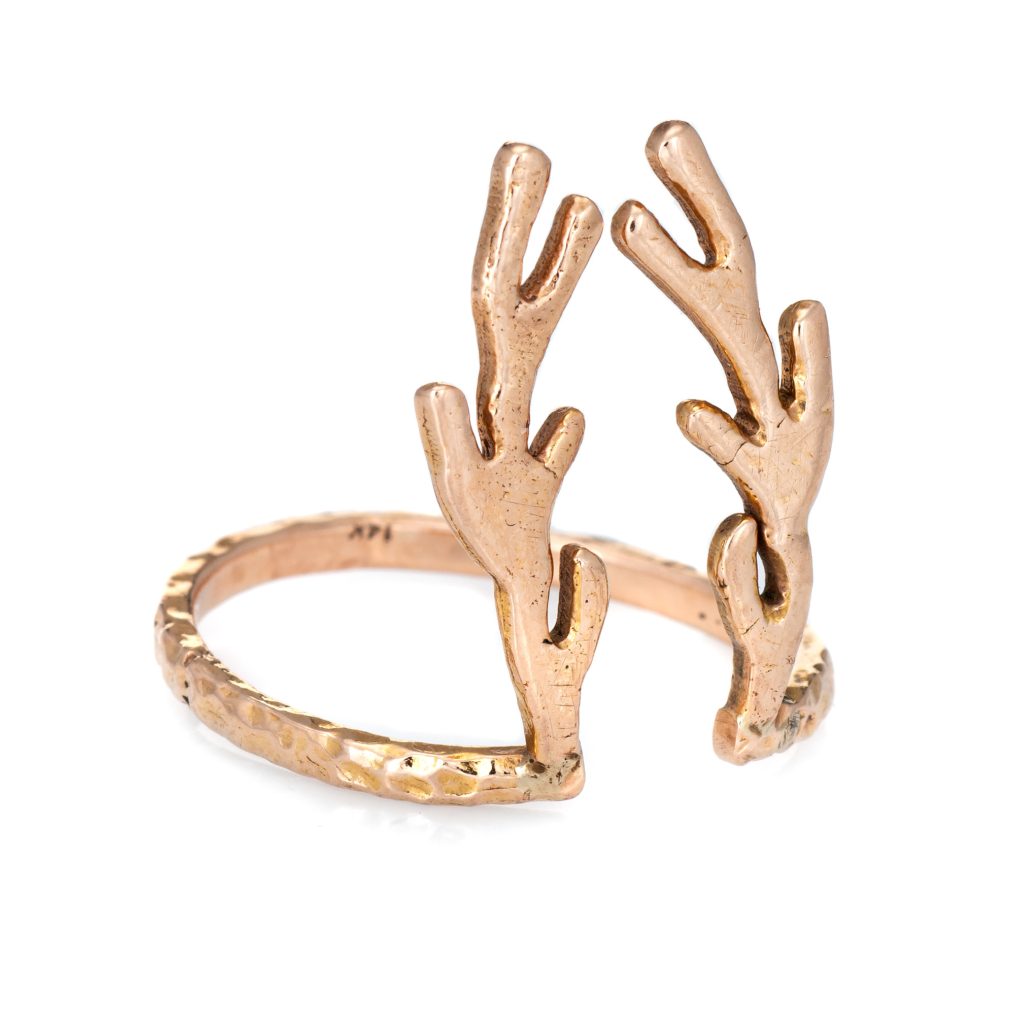 Finely detailed Deer Antler ring crafted in 14 karat rose gold.