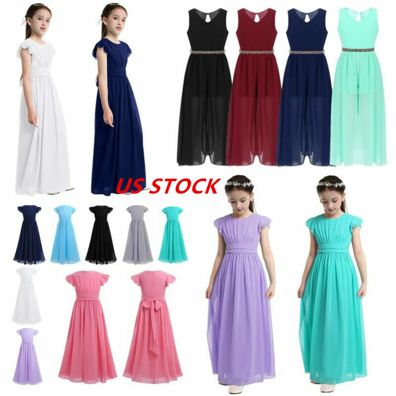 1 layer maxi length chiffon overlay is attached around the waist. Full lining. Beautiful and stylish dress for your girl.