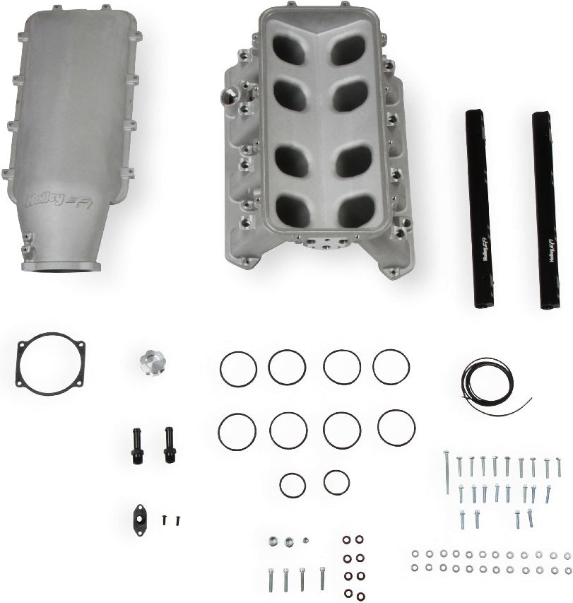 You are bidding on a Brand New Holley Gen III Hemi Hi-Ram ЕFI Manifold, 105 mm LS Style Throttle Body, Natural Cast Finish, Compatible with 2009 & Up 5.7L, 2005-2010 6.1L & 2011 & Up 6.4L Engines (Part #300-651). Add even more power to your Gen III Hemi engine with a Holley Hi-Ram intake manifold. This cast intake manifold has large intake ports - fits 2009-up 5.7L, 2005-2010 6.1L & 2011-up 6.4L engines. The Holley Hi-Ram intake manifold is for high-performance applications where induction system height is not limited. Using this Hi-Ram intake with high flowing Gen III Hemi cylinder heads has outstanding potential for naturally aspirated & forced induction applications. Aggressive, bold, race-bred styling will make bad intentions clear for drag race, muscle car, marine, off-road, sandrails, pulling trucks, track, street-rod applications and more! The base is designed to be modular in configuration to accept a wide range of ЕFI tops and to be attractive to builders and fabricators as the foundation for custom induction systems. Runner length and the tapered cross-section designed to perform well for a wide range of engine configurations. The ЕFI fuel rails are machined for -8AN O-ring fittings with passages large enough to accommodate high fuel flow and dampen pressure pulsations in the fuel system and come standard with ЕFI Hi-Ram kits. NOTE: Early 2003-2008 5.7L Engines Can Use 300-652 adapters to Match the Smaller Intake Ports on these Engines. NOTE: The lid on this intake manifold is machined to fit an LS style throttle body since this allows the use a cable operated throttle body (at a reasonable cost). NOTE: The 80mm Gen III Hemi Throttle Body (drive by wire) Can Be Used on This Intake - Use w/ 300-660 Adapter Plate. NOTE: The 92mm Hellcat Gen III Hemi Throttle Body (drive by wire) Can Be Used on This Intake - Use with 300-661 Adapter Plate. Features: