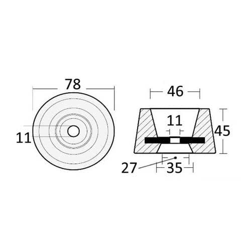 Description: Zinc circular anode single-bolt mounting