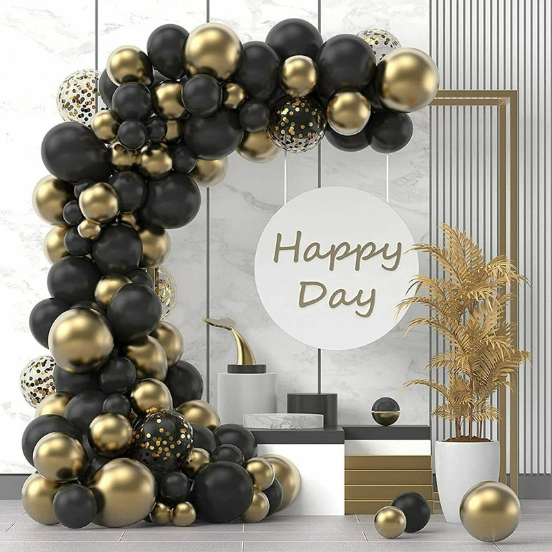 12” 10 Marble Black Balloons