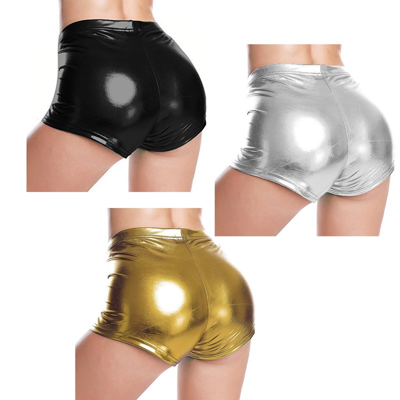 Womens Glossy High Waist Shorts Elastic Waistband Short Leggings Sports Bottoms.