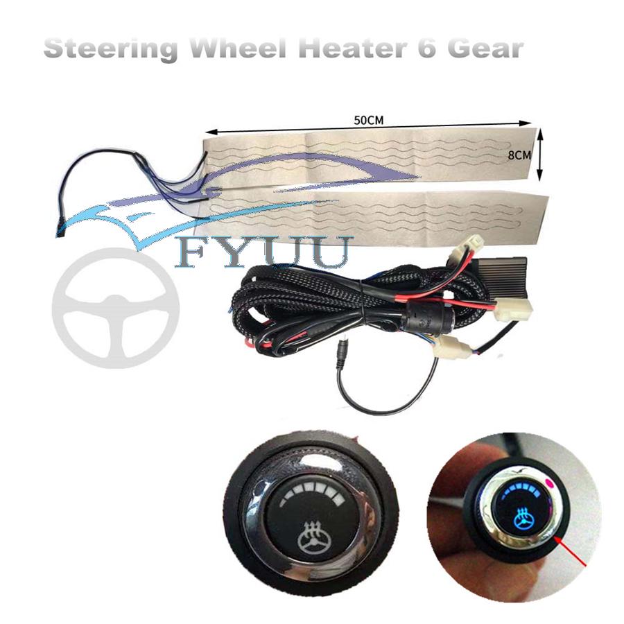 Power: 18W/pcs carbon fiber heating pad Heating pad size: 50cm*8cm *2 PCS Voltage:DC 12V Metarial: Carbon fiberFeature:Keep your hands warm in the coldest weather Keep your steering wheel looking new,it should assembly under the leather cover