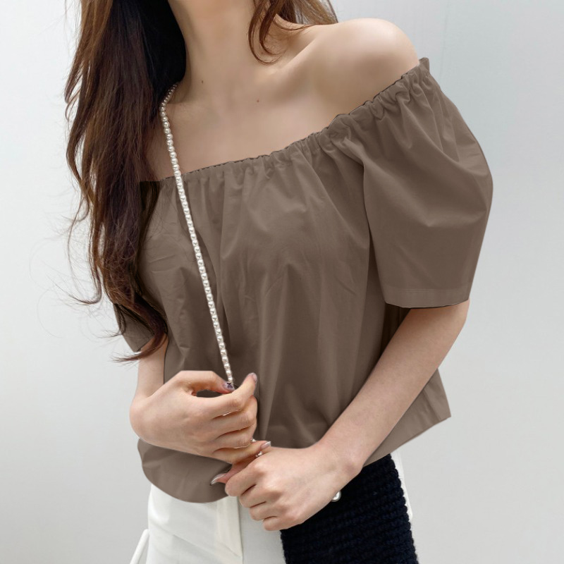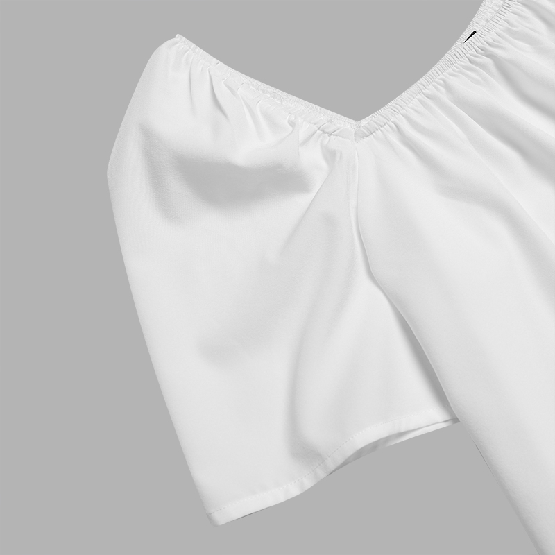 Features: Pleating,Puff Sleeve,Cold Shoulder,A-Line
