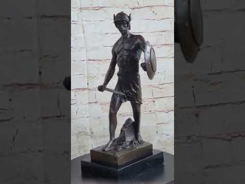 Transport yourself to the ancient training grounds with this captivating bronze sculpture that portrays a gladiator in the midst of intense preparation. Captured in a moment of focused determination, the sculpture brings to life the rigorous training endured by these warriors in the courtyards of schools. Guided by the expertise of their teachers, often retired gladiators themselves, novices learned the art of defense and attack, skills essential for survival in the arena.