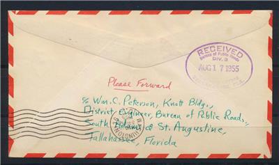 King Faruk Provisionals on Multifranked Censored Cover mailed abroad from Gaza-T - 5 July 1955 (at that time Egypt) to Washington / USA. After than forwarded to Tallahassee / Florida !