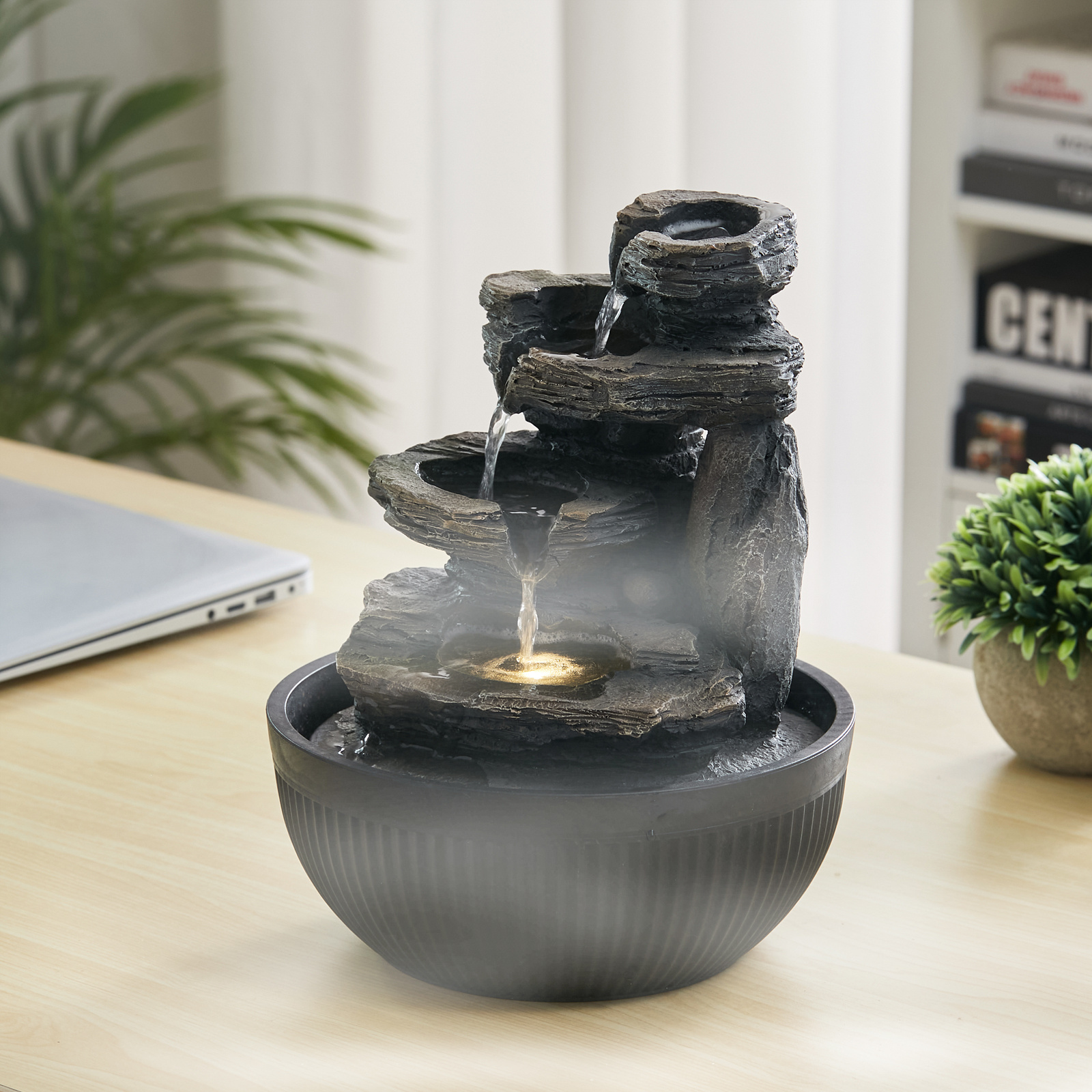 Electric Polyresin Water Fountain Feature LED Light Indoor Home Office Statue Decor
