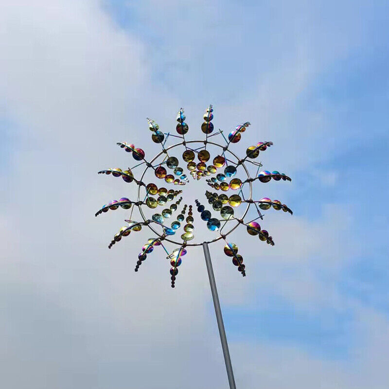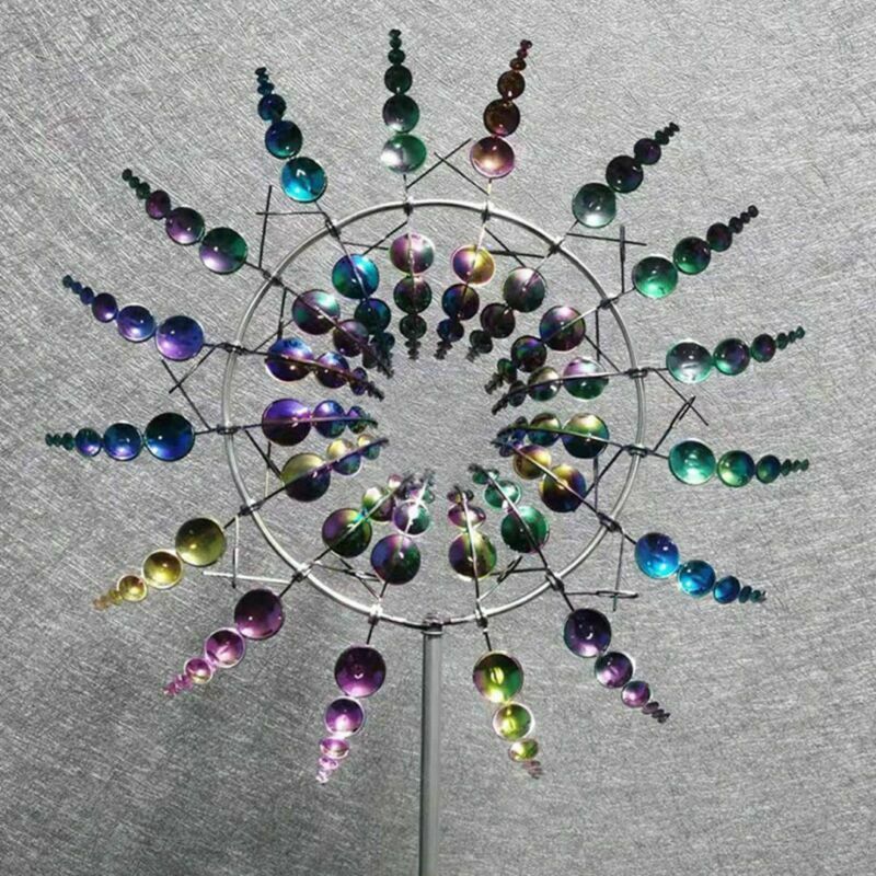 【WEATHER RESISTANT】-- Our metal wind spinners come with multi-color brushed coat finishes and a stable stake at the base, which is built to withstand all weather, sturdy and durable for windy days.