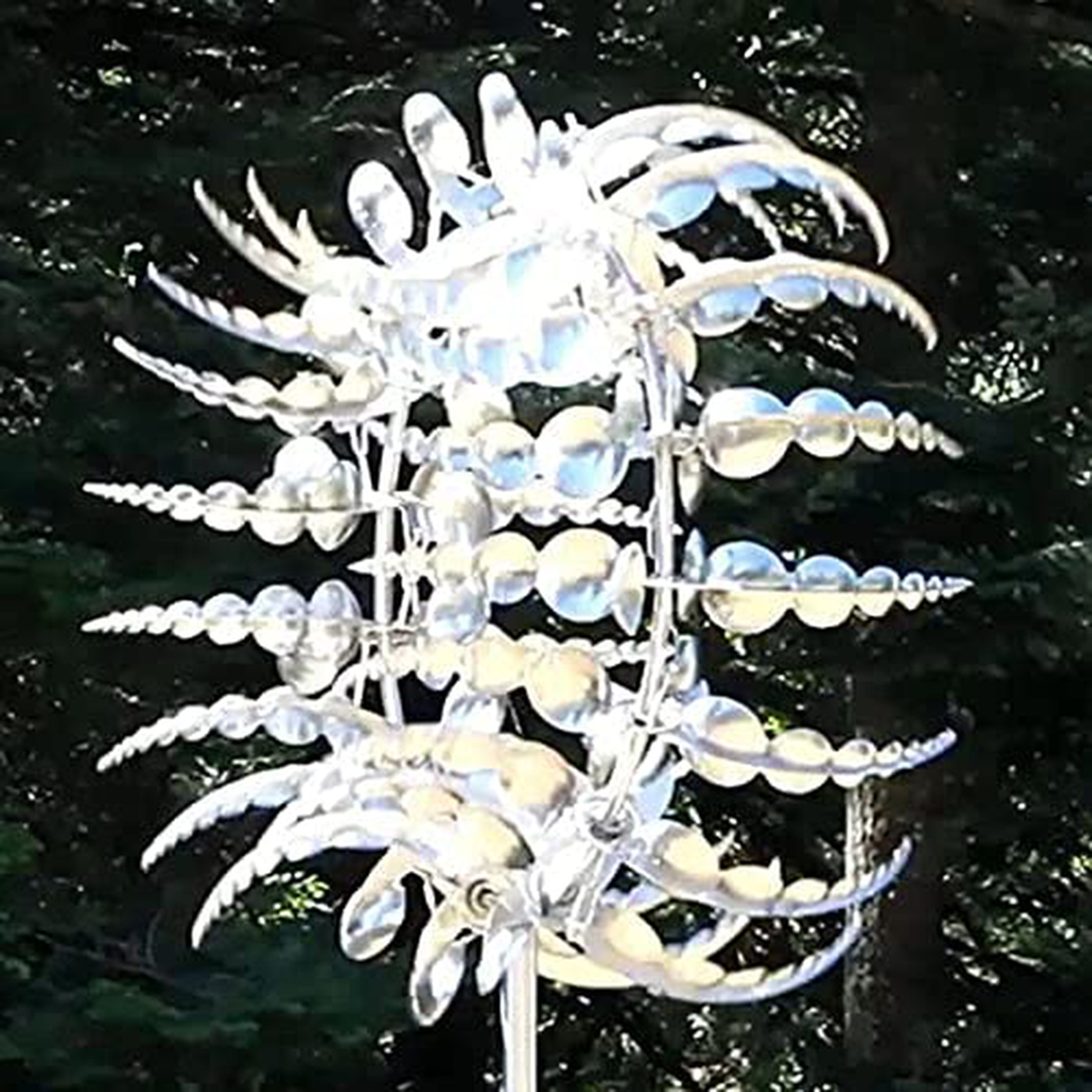 【HIGH QUALITY】-- This garden spinner is constructed with durable iron metal components and a long-lasting combo finish of paint and foil, bright metallic and reflective painting creates a visual sensation in the garden.