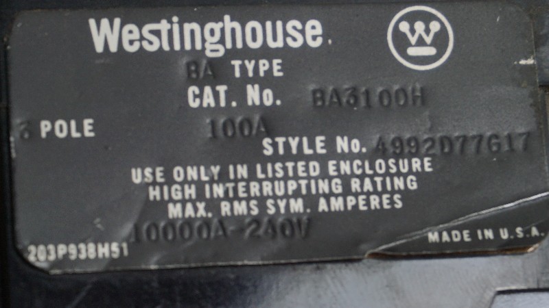 Manufacturer's ID: BA3100H 3POLE 100A