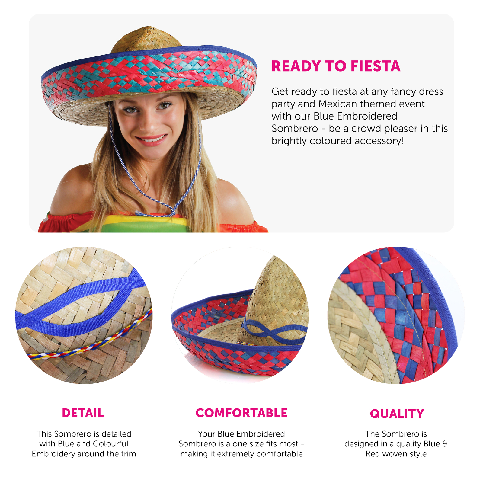 ONE SIZE FITS MOST: Being a very comfortable size for all adults having a very well-rounded size, this Blue Sombrero Hat is wearable for most if not all adults, measuring in at 58cm for headspace, this is the perfect hat to wear for a fun night!