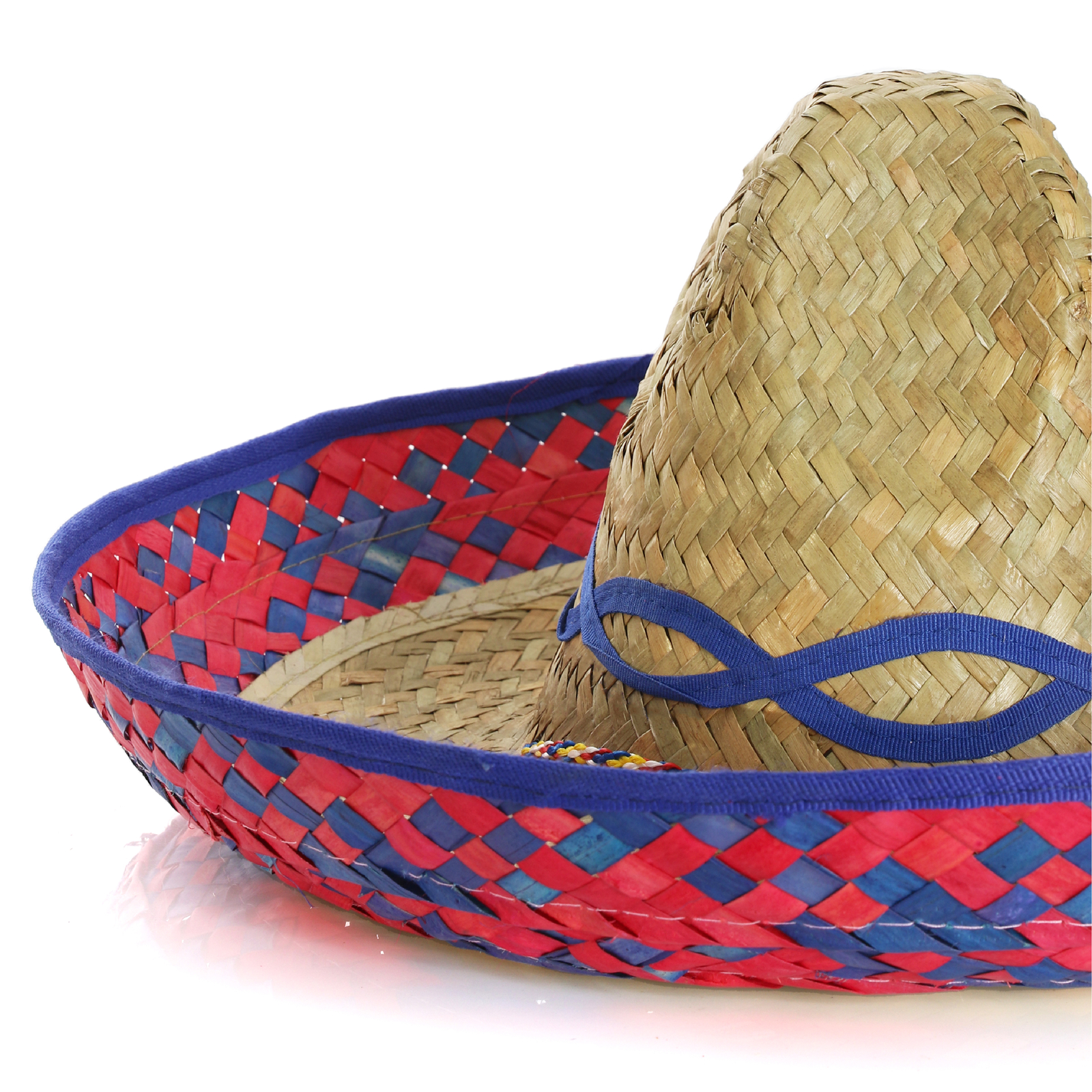 QUALITY STRAW SOMBRERO HAT WITH BLUE EMBROIDERY