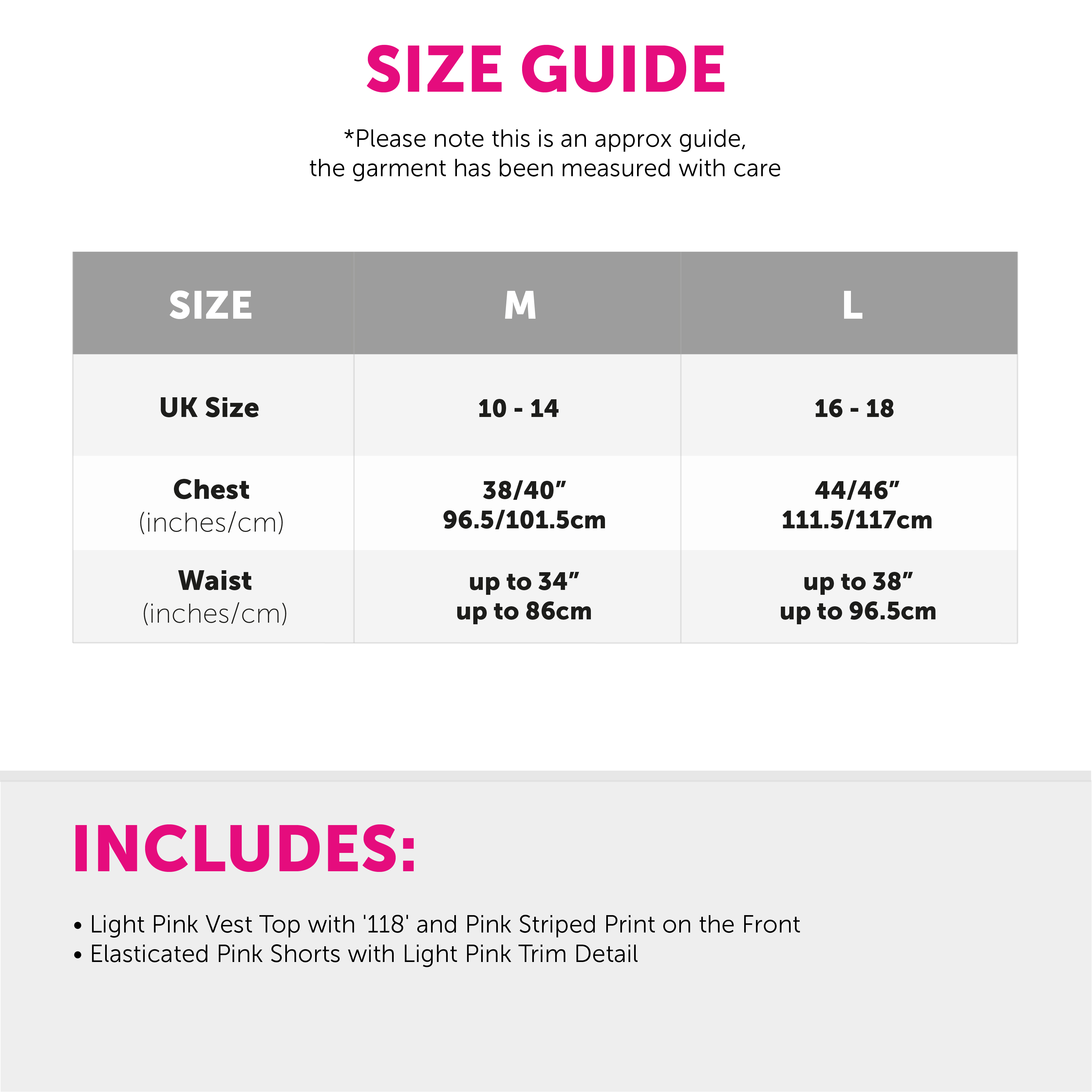 COSTUME DETAILS: Your Ladies 118 Marathon Costume includes a Light Pink Vest Top with a vibrant Pink '118' Print on the front and Pink Shorts with Light Pink Trim detail and an elasticated waistband, the perfect choice for any fancy dress event!