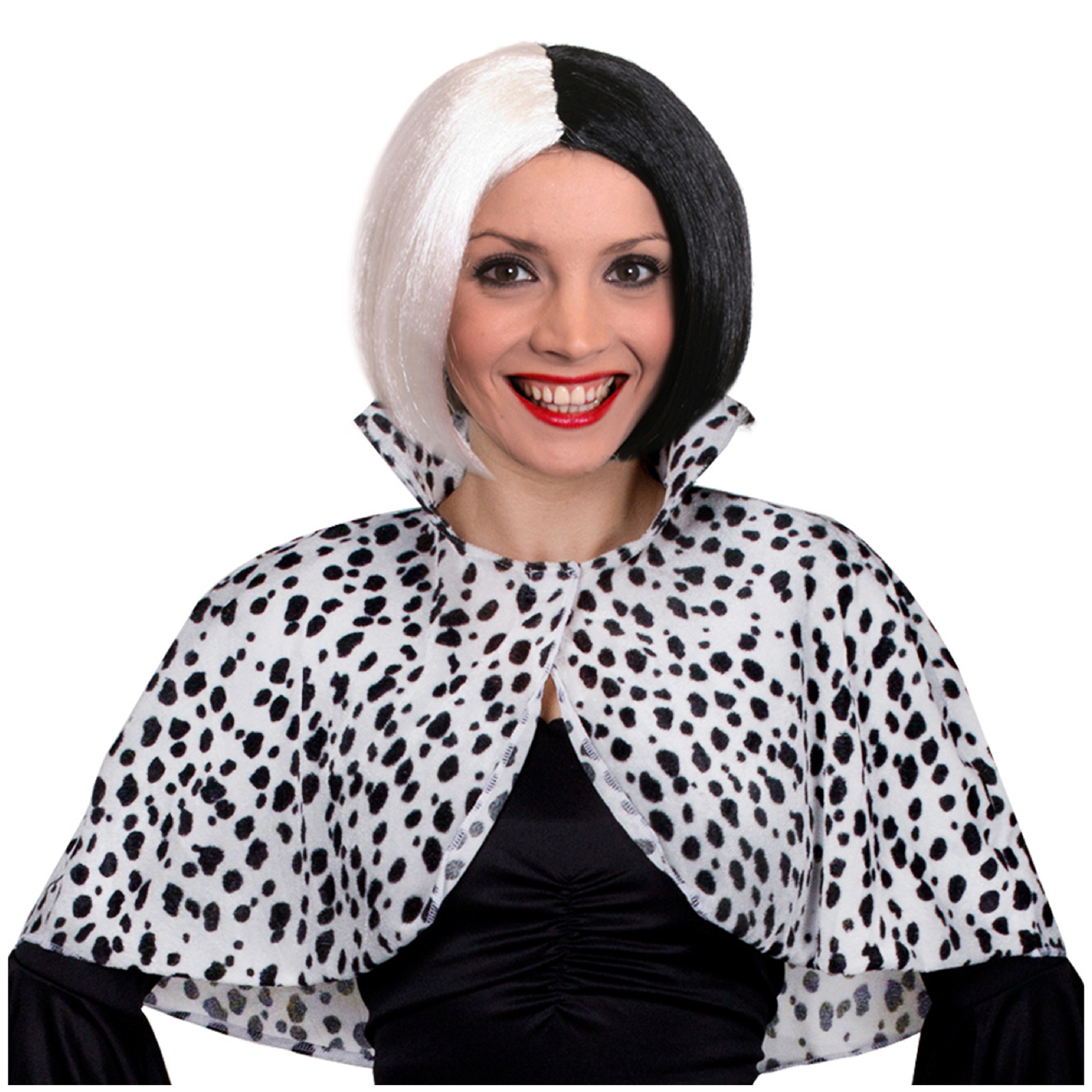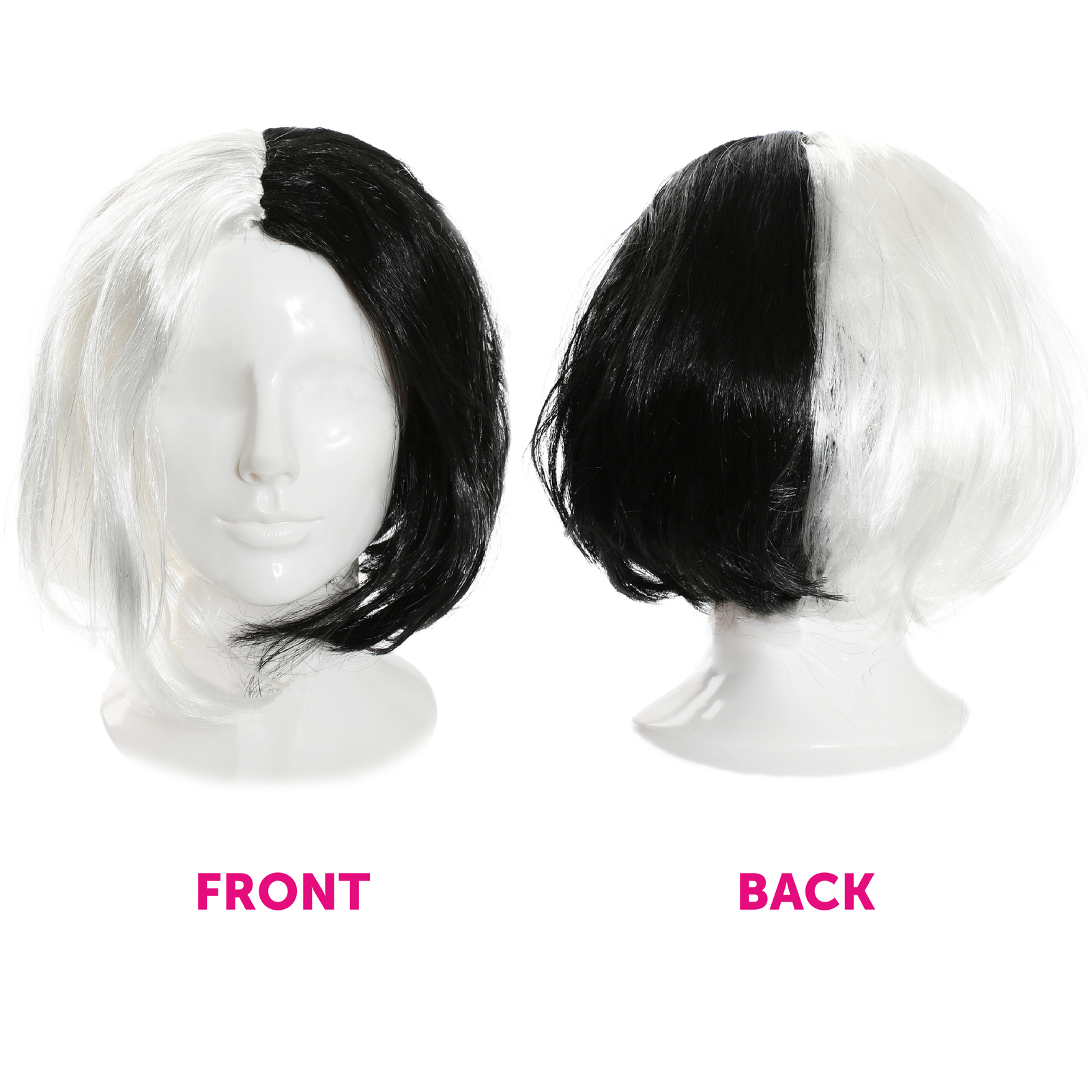 FANTASTIC WIG QUALITY: From the stylish looks and recognisable features, your Black and White Wig can be used to complete any costume, from Evil Dog Ladies to famous singers, TV, and Movie characters!