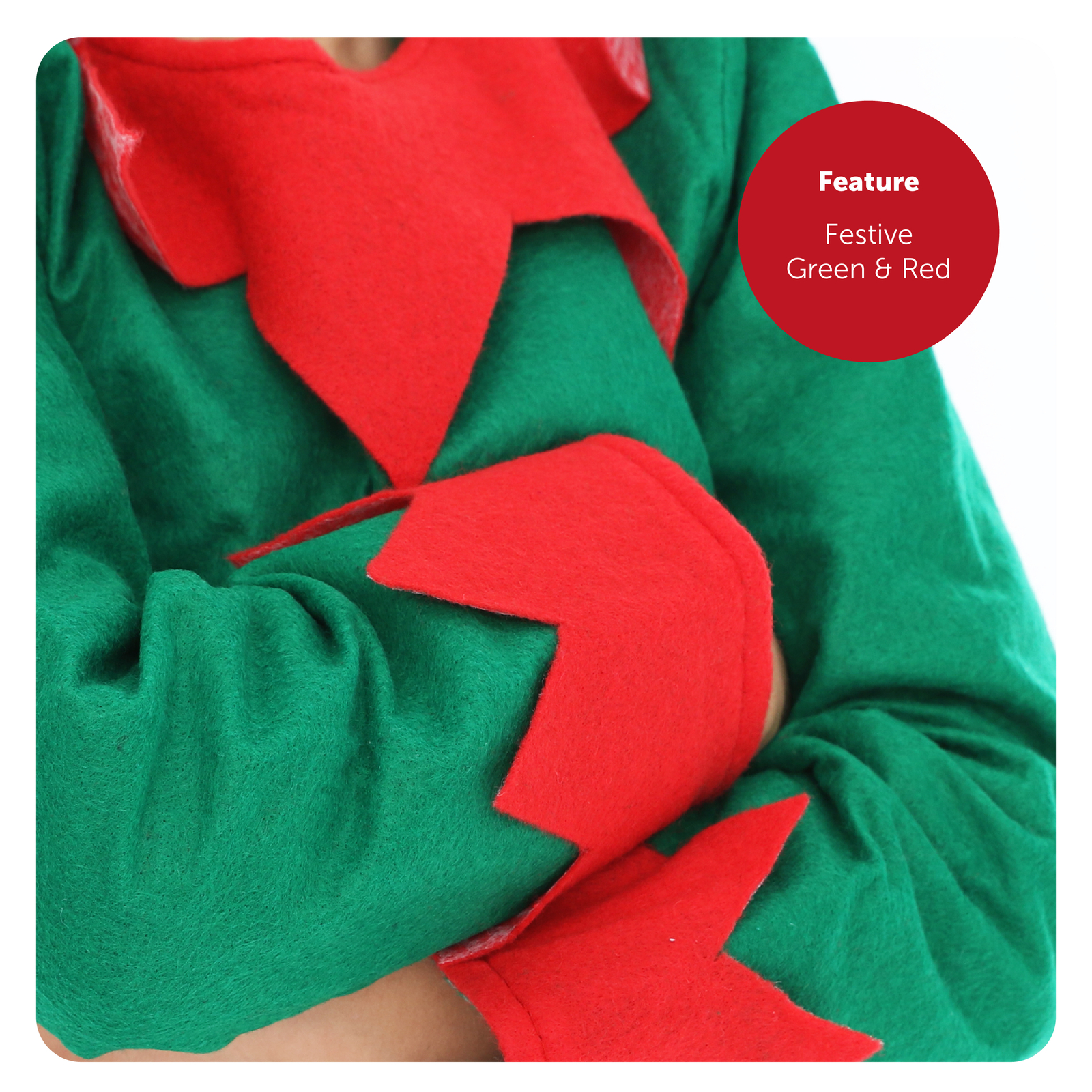 COSTUME INCLUDES: Your Childs Christmas 5 Piece Elf Costume will include a long Green sleeve top with Red Collar, Red Trousers, matching Elves hat, a Black Belt with a Gold Buckle, and Elf Boots to complete your look!
