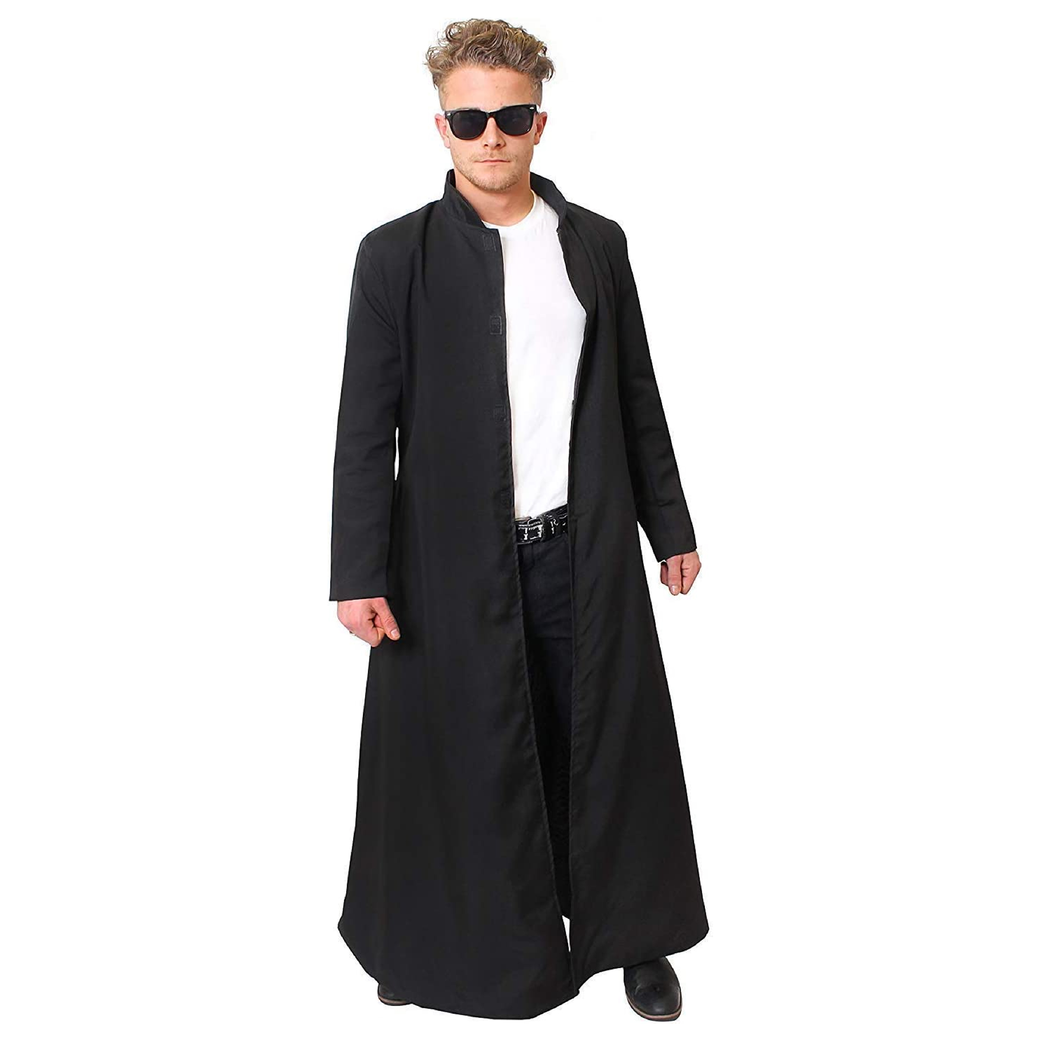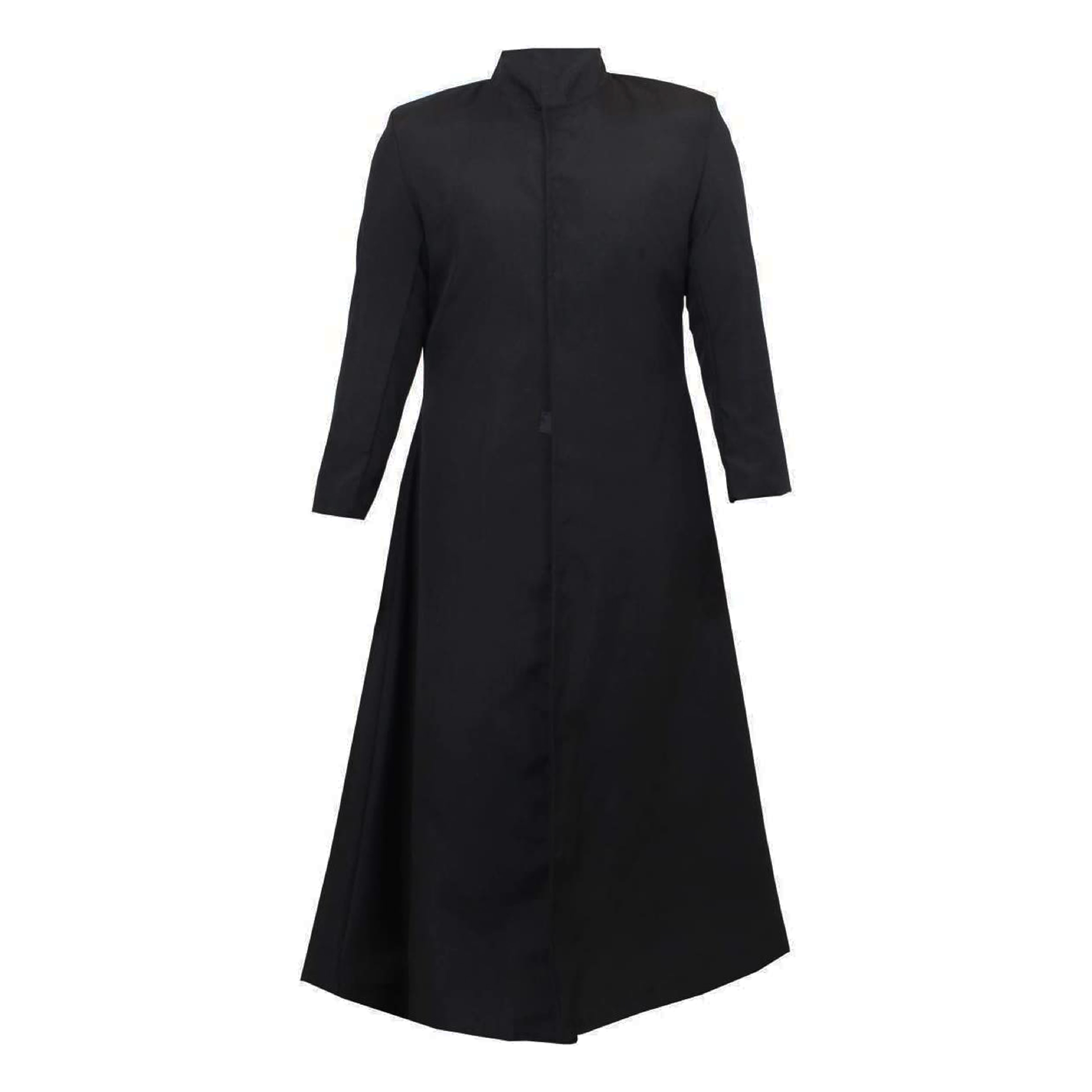 LONG QUALITY BLACK LINED DUSTER COAT WITH FASTENING