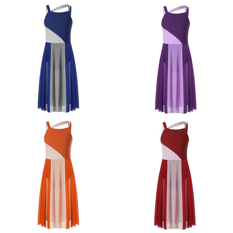 Dance leotard dress is made of polyester and mesh material, hand wash.