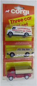 CORGI JUNIOR 3-1 GIFT PACK #22 PAPAMEDICS #51 VOLVO ESTATE CAR TIPPING LORRY MOC. Some wear on card.