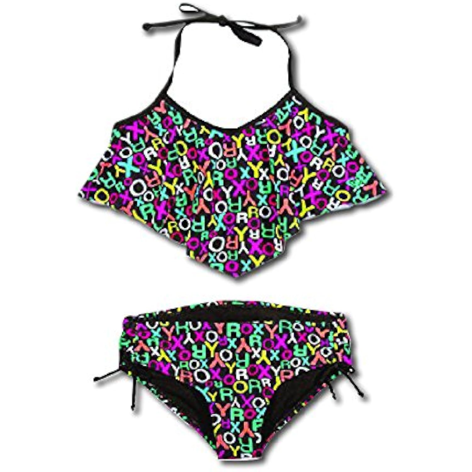 Roxy Girls' 2-piece Halter Bikini Swimsuit Set, Black Pop Logo - NEW without TAGS
