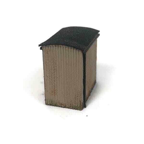 A laser-cut self-assembly OO Scale GWR Lamp Huts kit. Featuring highly detailed, laser engraved corrugated iron sides and roof with bolt heads & lock detail, plus a small, glazed window on one side of the hut.