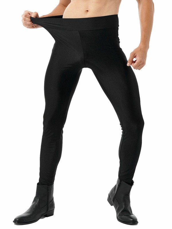 Men Patent Leather Mesh Patchwork Leggings Sports Yoga Mid Waist Skinny Pants Clubwear.