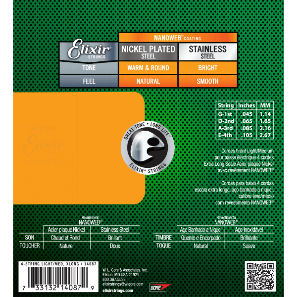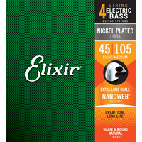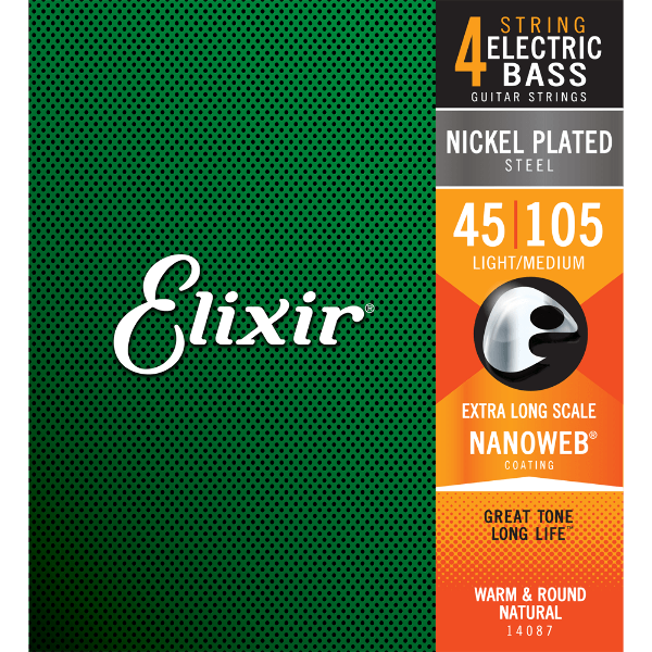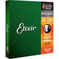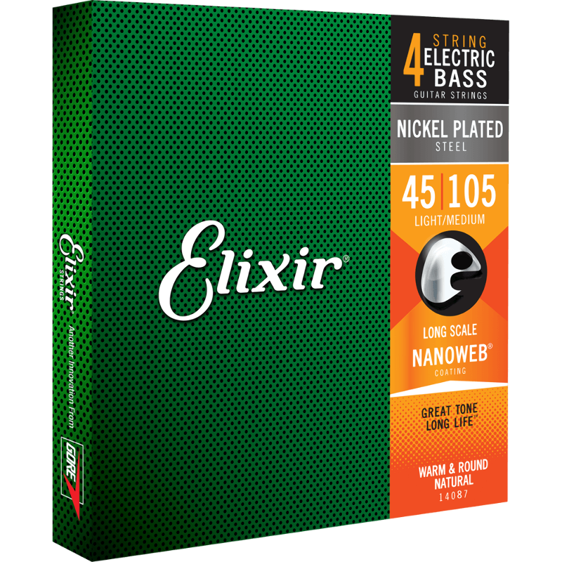 Jam on and on (and on) with the same premium electric bass guitar strings that experienced players worldwide trust to keep their incredible tone longer than any other string available. Specially developed based on in-depth feedback from more than a thousand bass players just like you, our tailor-made selection of bass strings proudly includes nickel plated and stainless steel construction options, four-, five- and six-string sets, long and extra-long scales, and virtually every gauge range you could possibly need. All with our innovative string coating technology. And unlike other string brands, Elixir Strings coats the whole string. This protects not only the outer string surface but also the gaps between the windings where common tone-deadening gunk typically builds up in other brands’ coated and uncoated guitar strings. Who wouldn’t love more quality playing time between the hassle and cost of string changes? Premium by design, these electric bass round wound guitar strings constructed with nickel plated steel wrap wire boast a rich, rounded tone with incredible clarity and a heavy mid-range presence. Meanwhile, the NANOWEB® Coating, redesigned specifically for bass guitars, allows a smooth, natural feel that also enhances grip and reduces finger squeak. For a brighter bass tone, try our round wound Stainless Steel Bass Strings with NANOWEB Coating. Of course, the kind of string you play is all a matter of personal preference. Not sure what tone is right for you? Try them out for yourself, and find your new favorite string from Elixir Strings. Elixir Strings: Great tone. Long life.