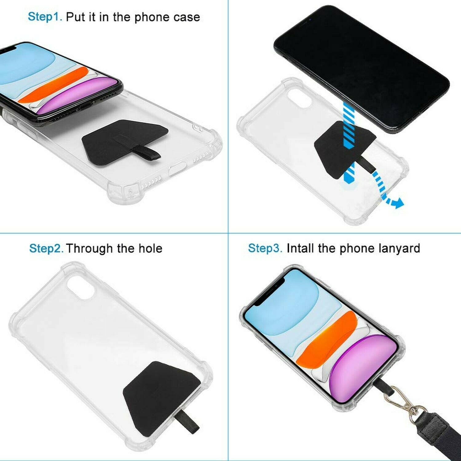 4.Easy To Use.Put a tether tab in the cell phone case, and through the middle of charing hole and the phone case.