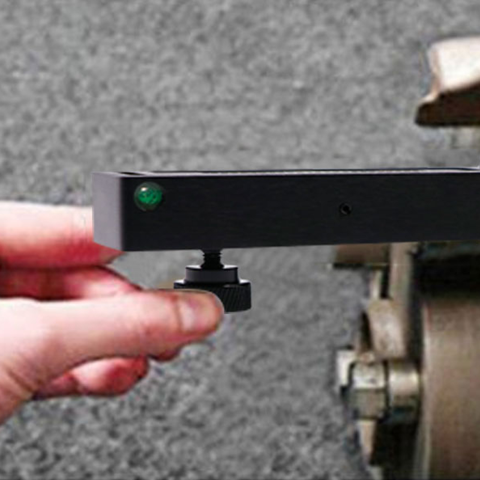 Measures the camber and caster angle on the wheel hub or brake disc.