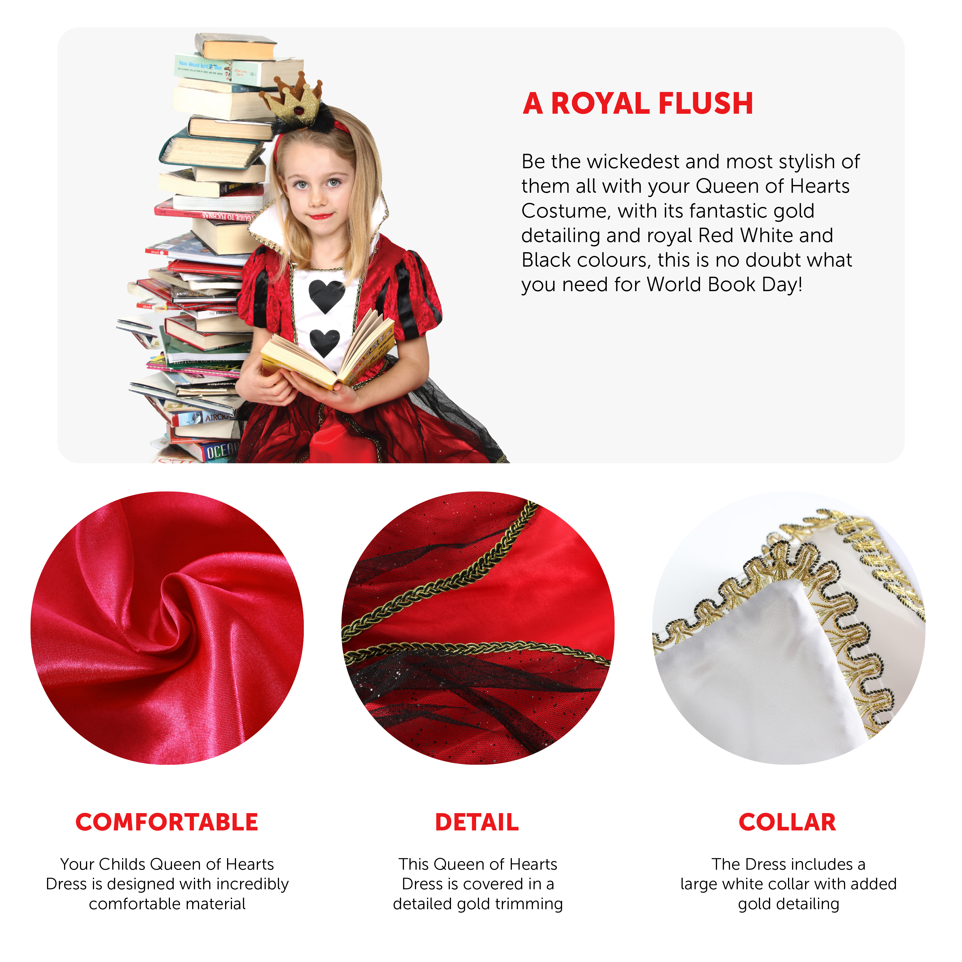 Well worth the price and fast postage. Would recommend DELUXE QUEEN OF HEARTS COSTUME FANCY DRESS WONDERLAND KIDS ADULTS WORLD BOOK DAY | sharon-frizzo (945) | 03/02/2025 | |