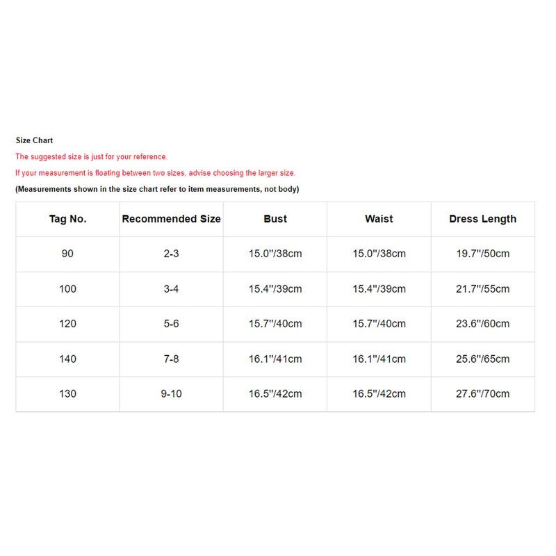 Size Chart:The suggested age and height is just for your reference. If your measurement is floating between two sizes, advise choosing the larger size. (Measurements shown in the size chart refer to item measurements, not body.)