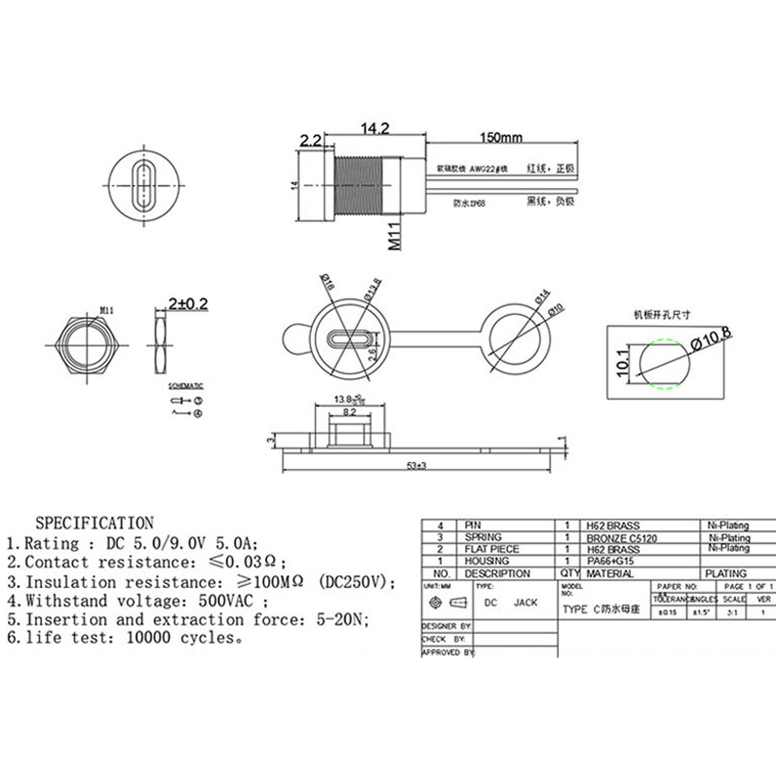 20pcs USB Connector Type-C Waterproof with PH 2.0 nut locking plate Female TPC Waterproof High Current Fast Charging jack port