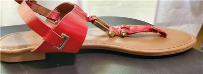 Great summer sandal with toe strap, Gold Tone Accents, and ankle strap closure. Very comfortable and stylish. A great addition to any outfit.