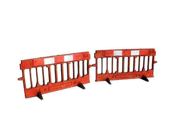 A pack of 6, self-assembly laser cut Construction site / Roadworks safety barriers in OO scale. Ideal for adding detail to street & industrial scenes on your layout. Straightforward to assemble with instructions included. Can be easily painted using artists acrylics and come complete with printed red & white striped band for the tops of each barrier. Laser etched barrier detail on one side only.