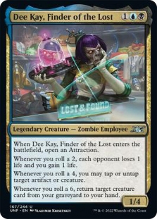 When Dee Kay, Finder of the Lost enters the battlefield, open an Attraction.