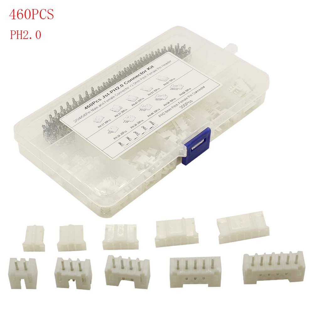 460PCS JST PH2.0 XH2.54 Male Female Connector Kit 2/3/4/5/6 Pin Plug with Terminal Wire Cables Socket Header Wire Connectors Kit
