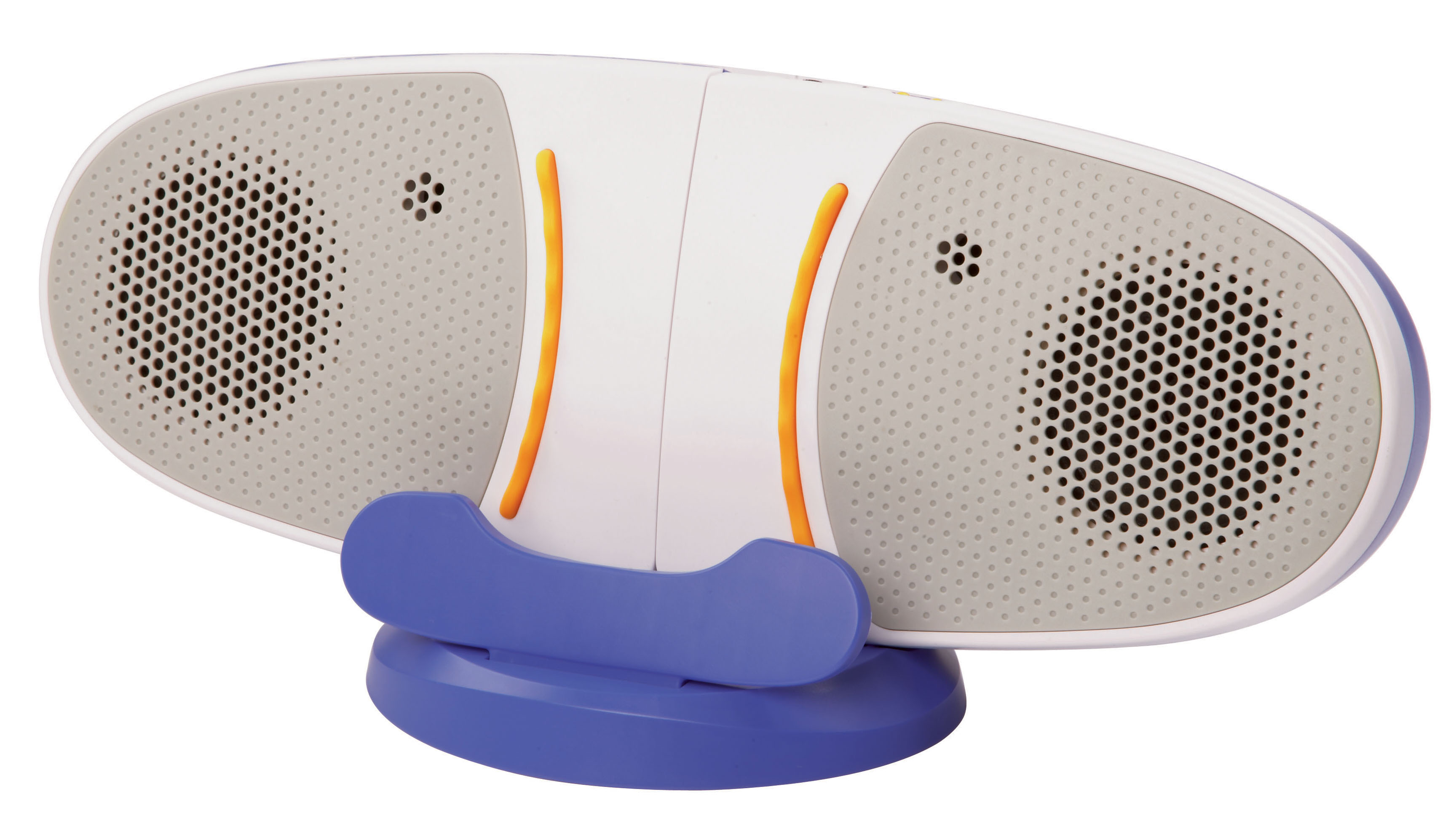 Get better stereo sound out of your child's InnoTab system with the InnoTab Stereo Speaker System by VTech! Working with all InnoTab models, the system connects to the InnoTab through an audio cable that plugs into the InnoTab's earphone jack. With a rotary knob for volume control, your child can enjoy their favorite games, music, e-books and videos with stereo sound! Better sound quality on the InnoTabis a hit with the InnoTab Stereo Speaker System by VTech! Now your child can enhance their play experience as they read e-books, watch videos, play games or listen to their own MP3 music with stereo quality sound. Connect any VTech InnoTab system into this stereo speaker with the included audio cable. This stero system has a rotary knob for volume control and holds the InnoTab in landscape or portrait positions. The stereo will also automatically shut off to preserve battery life. The speaker system can be powered by 4 AA batteries or an AL26AC adaptor (sold separately). (Note: Not a docking station—does not charge your InnoTab system.) This item is NEW.