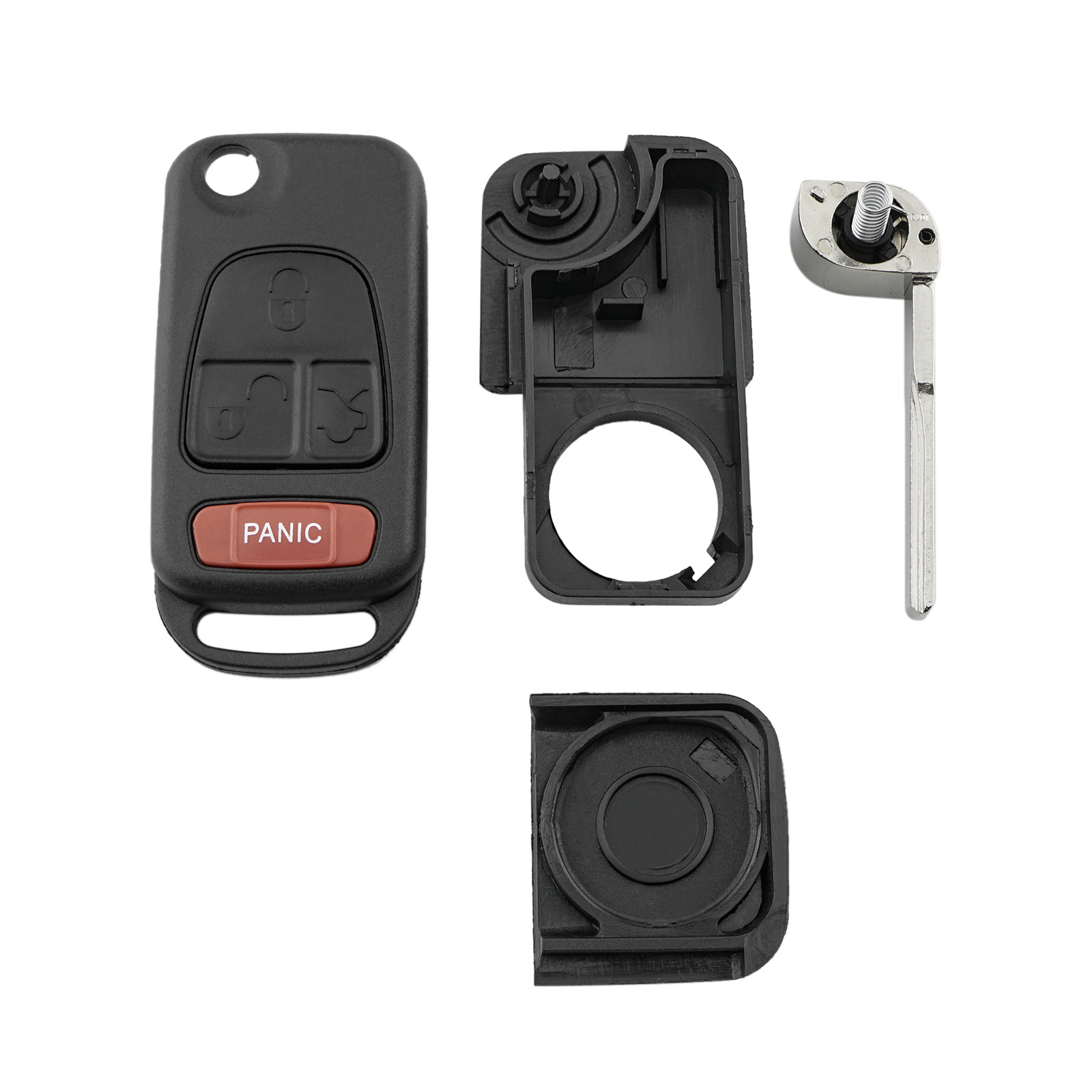 Feature: Condition: 100% Brand new Material: ABS & Metal Color: Black Battery/ Transponder chip/ electronic: No Key blade: Flip Blade Button: 3+1 / 4 Buttons