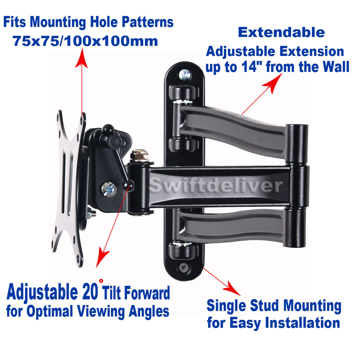 Articulating TV Monitor Wall Mount Bracket for most 19" to 32" some Screens up to 37" LCD LED with VESA 100x100/75x75mm
