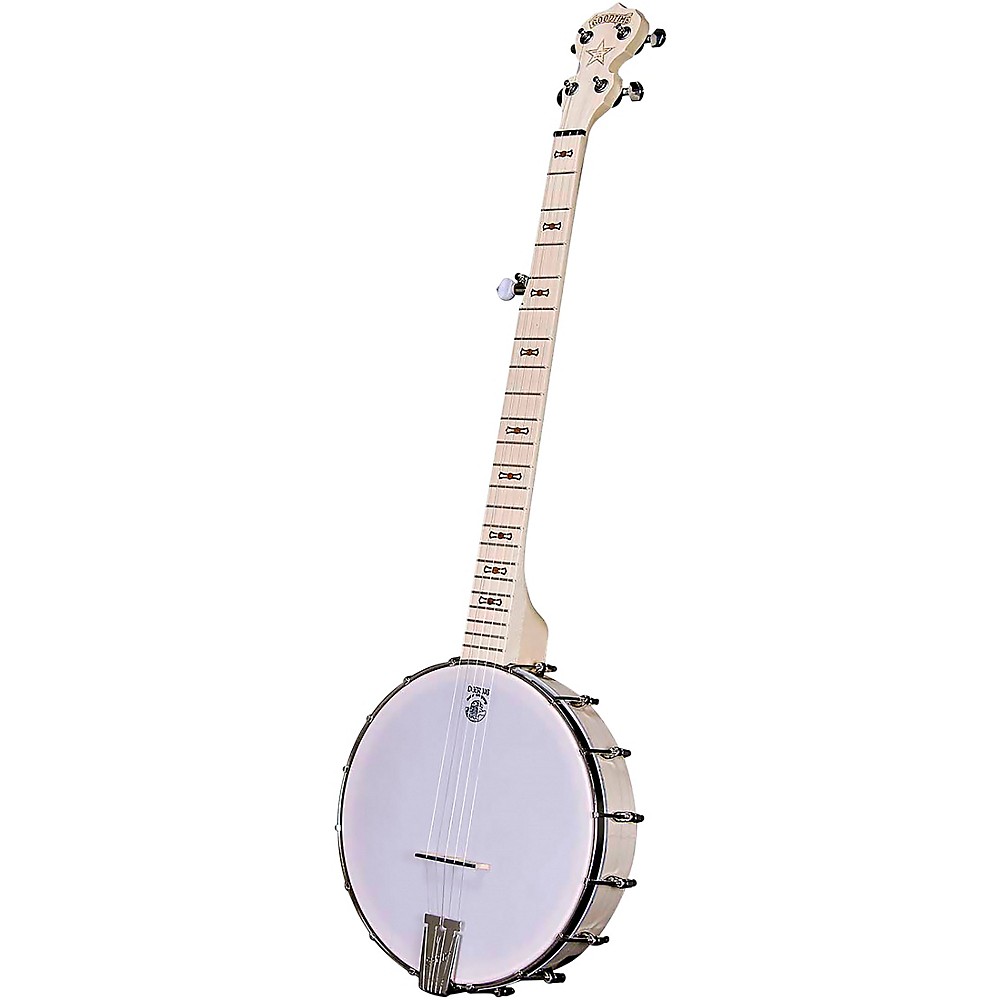 The slender, fast-playing rock maple neck, and birch and maple rim create a sparkling, sweet banjo sound with easy adjustability to keep it sounding and playing great. Geared tuners make tuning easy. The Goodtime nickel banjo comes with a standard 11" head
