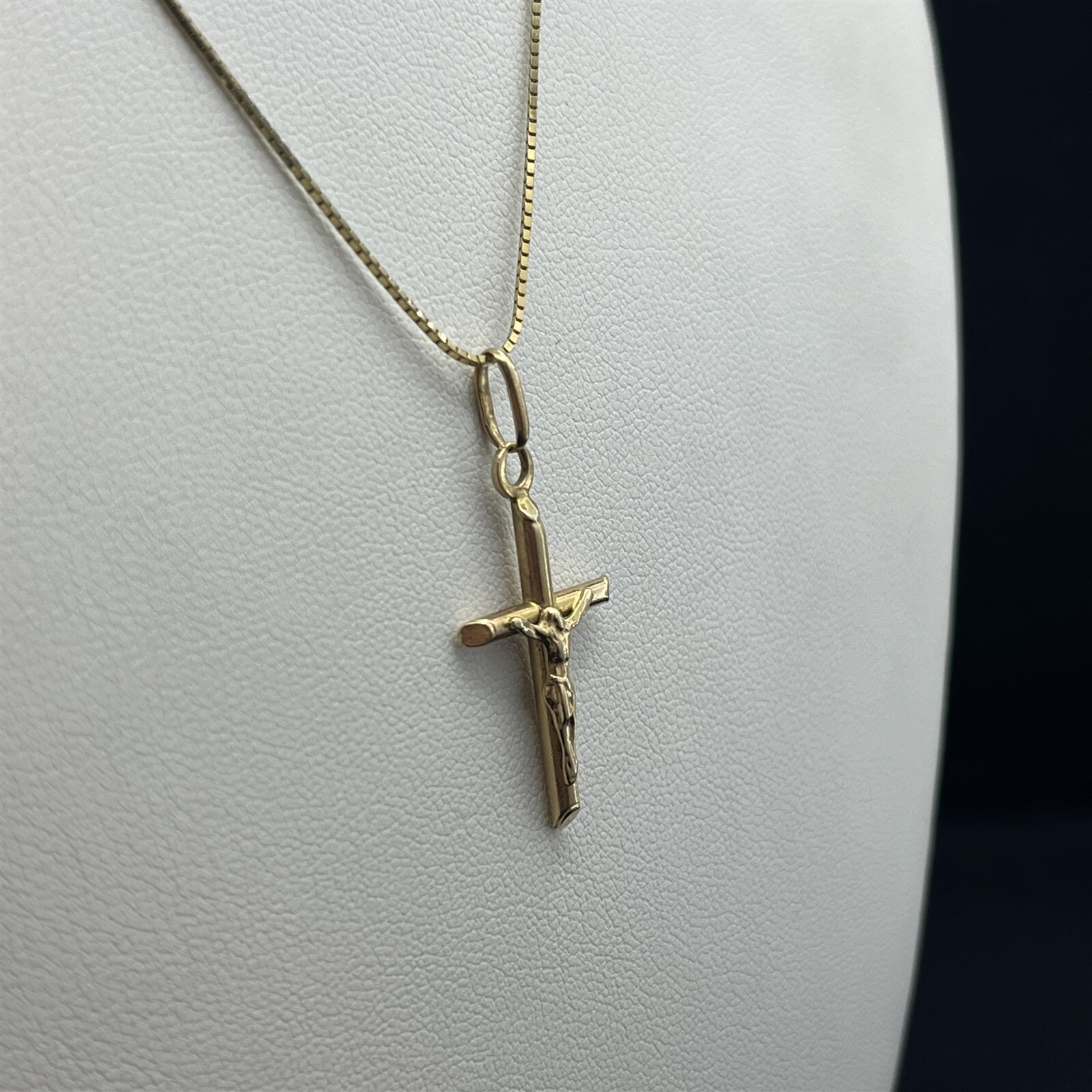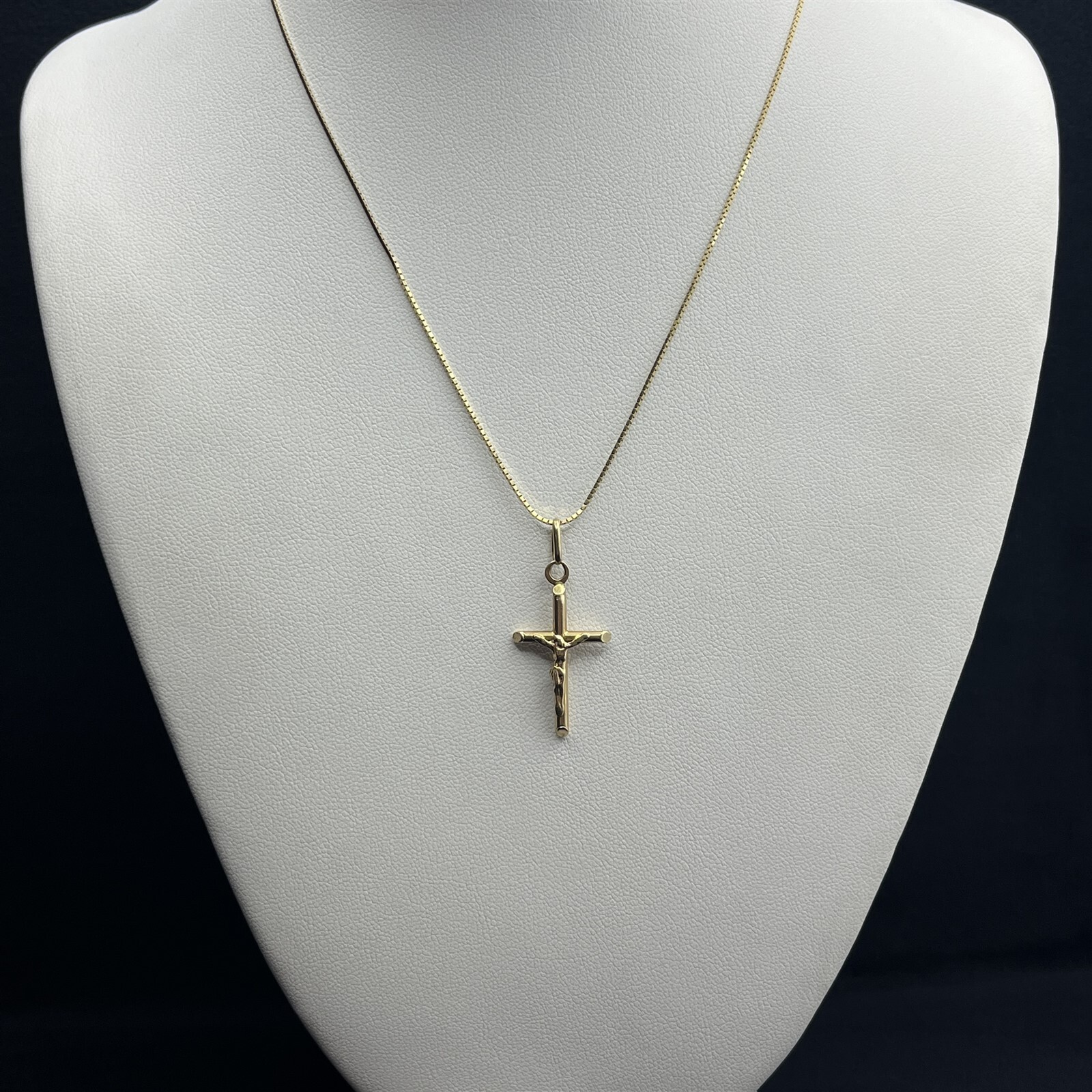 Minimalist Italian Religious Cross Christian Faith 14k Yellow Gold Pendant. This pendant features a cross with Jesus Christ on the front. Chain not included. |
