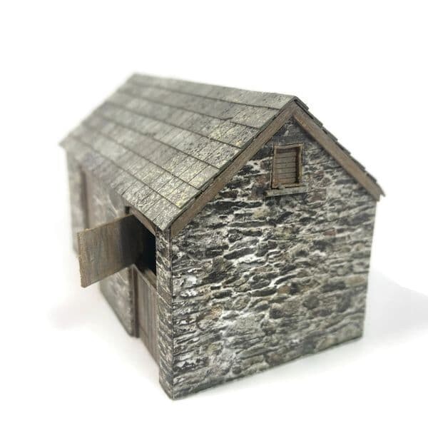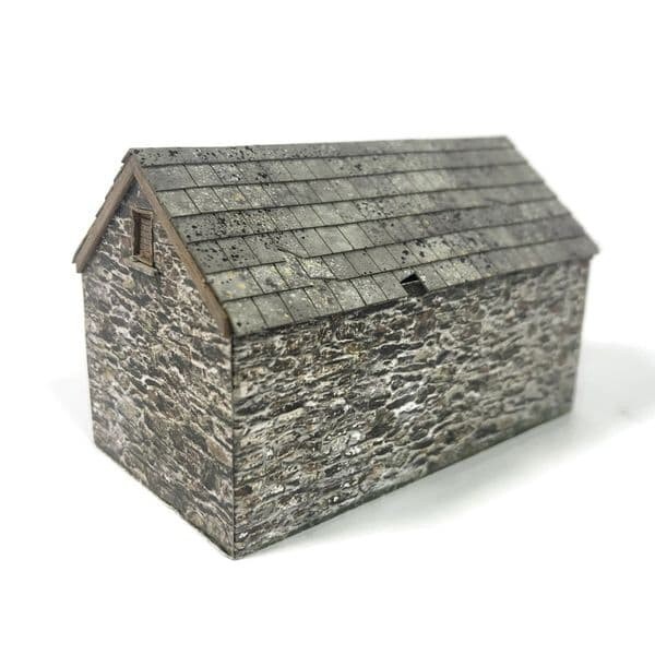 A versatile OO gauge / 1:76 scale stables / stores building suitable for farm, railway or industrial use. The design is typical of many buildings of this type that can still be seen all over the British Isles, with stone/brick walls & slate roof.
