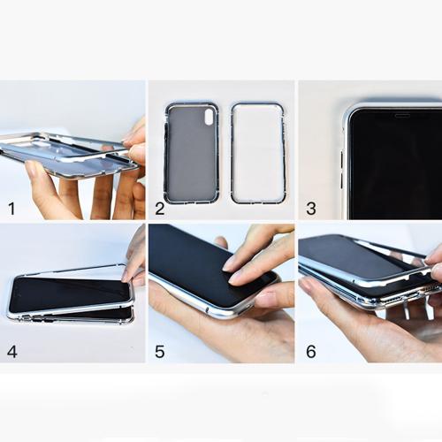 - Die Hülle besteht aus zwei Teilen - Metallrahmen und Backcover mit Magnet und beidseitiger Schutz aus 9H gehärtetem Glas.