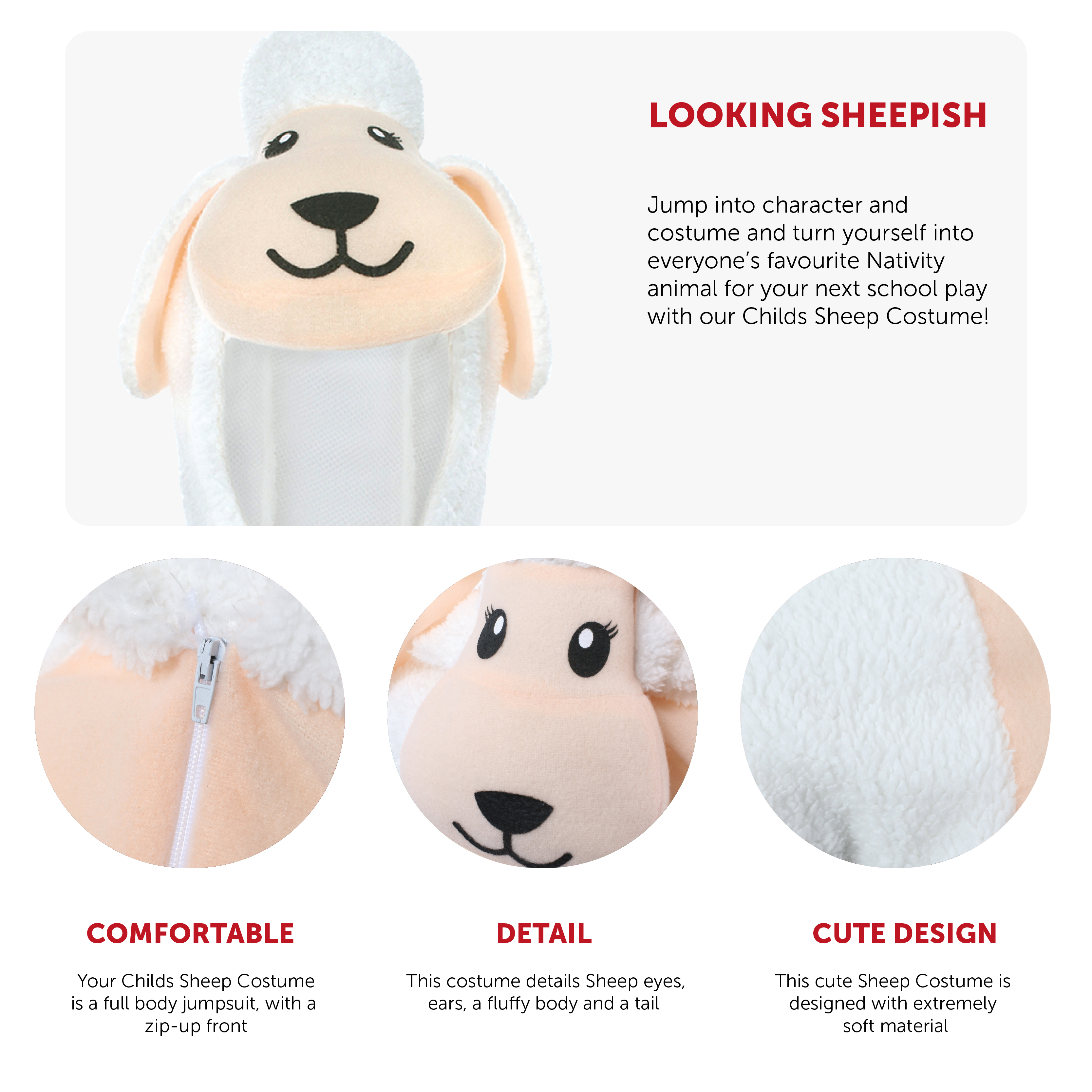 PERFECT FOR CHRISTMAS AND NATIVITY FANCY DRESS: Whether you’re trotting along to your next Christmas Fancy Dress, or playing a part in the Nativity, then our Childs Sheep Costume is perfect for the season!